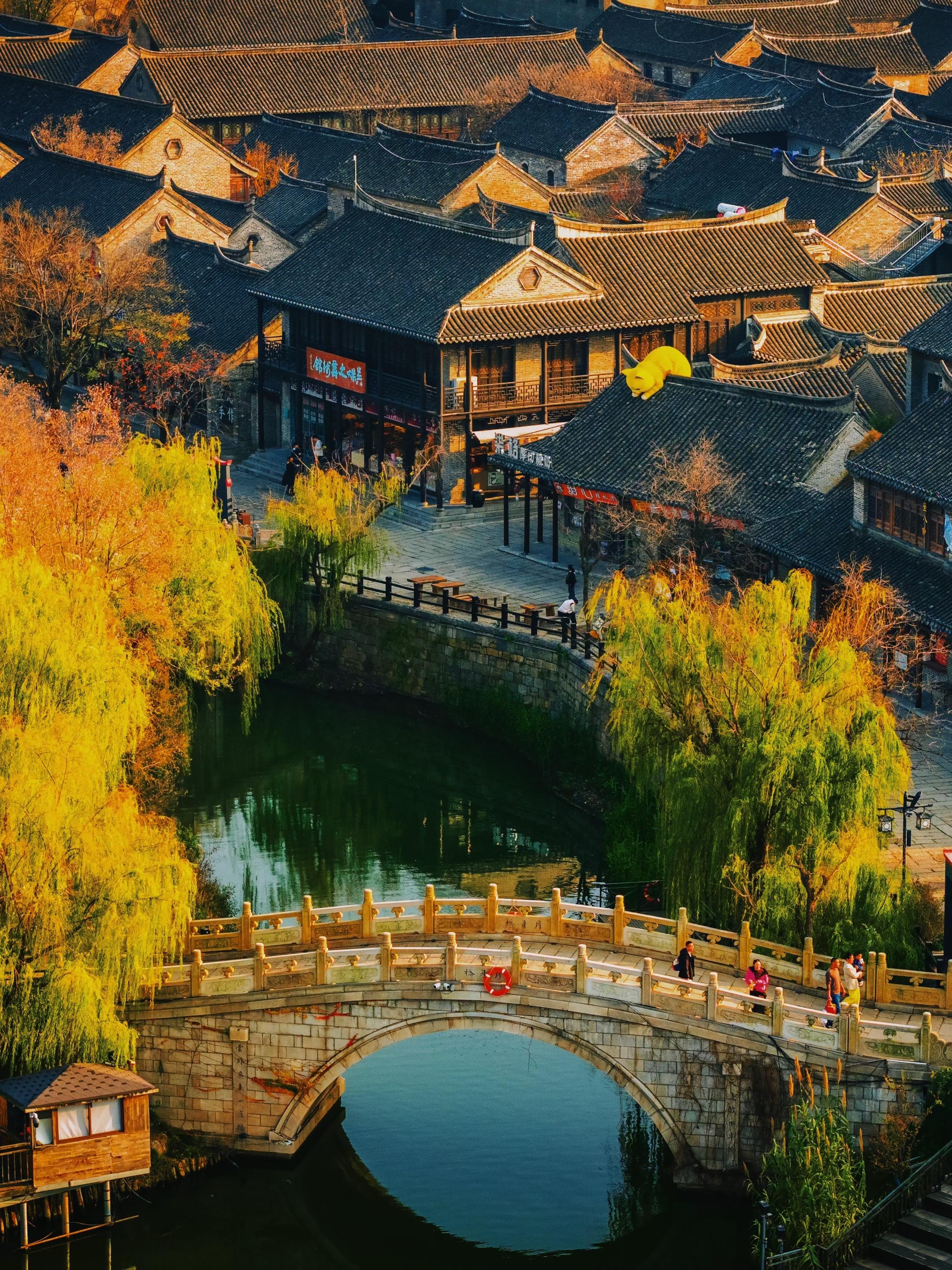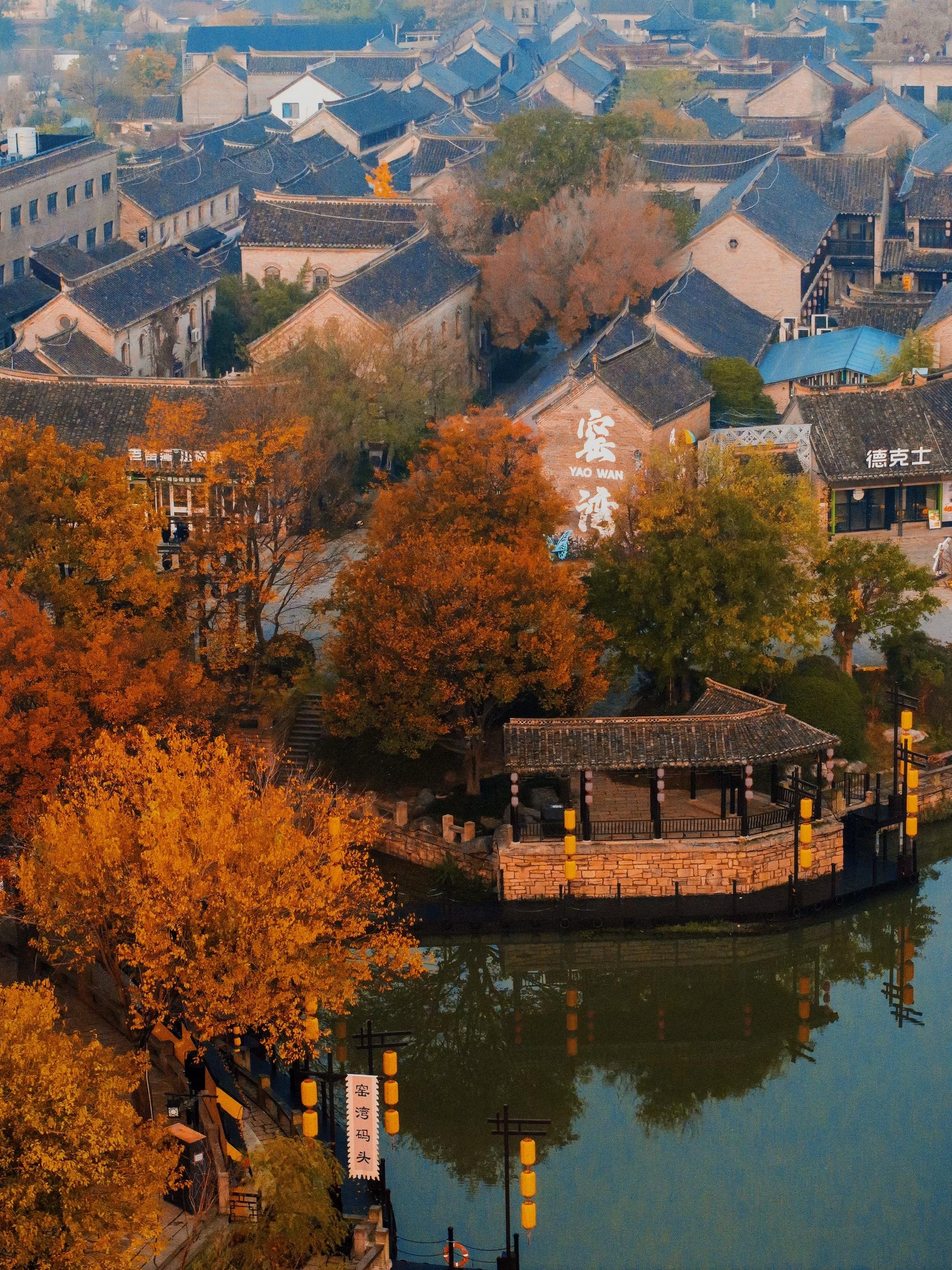 朋友圈被问爆了❗️徐州古镇的鎏金现实版梦。谁说秋景只有南京? 徐州新沂藏着更妙的秋日 既有🏞清溪绕林的秘境 又铺着🍂层林尽染的斑斓 京杭大运河边 这座裹着非遗烟火的🏯古镇 地址📍:徐州马陵山和窑湾古镇