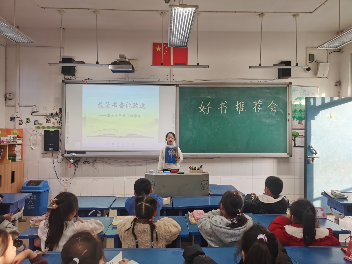 书页轻翻,墨香四溢。活动伊始,各班语文老师广泛动员,指导学生精准选书、打磨展示内容。在班级好书推荐会上,低年级学生以清澈童声开展经典诵读,别看他们年龄小,站在讲台上是了不起的推荐官,推荐的书目从《儿歌300首》、《小巴掌童话》到《柳林风声》、《大头儿子和小头爸爸》等等,字字句句饱含真挚情感,尽显童真与专注。高年级学生化身故事主角,从经典名著到趣味科普,从成长故事到冒险小说,通过生动讲述、趣味课本剧演绎等形式,让一个个鲜活故事落地生根,让书香浸润童心。班级推选出来的“好书推荐官”们各具特色,他们作为班级代表,还在每周一升旗仪式上进行分享展示,为学生搭建更多展示自我风采的平台。