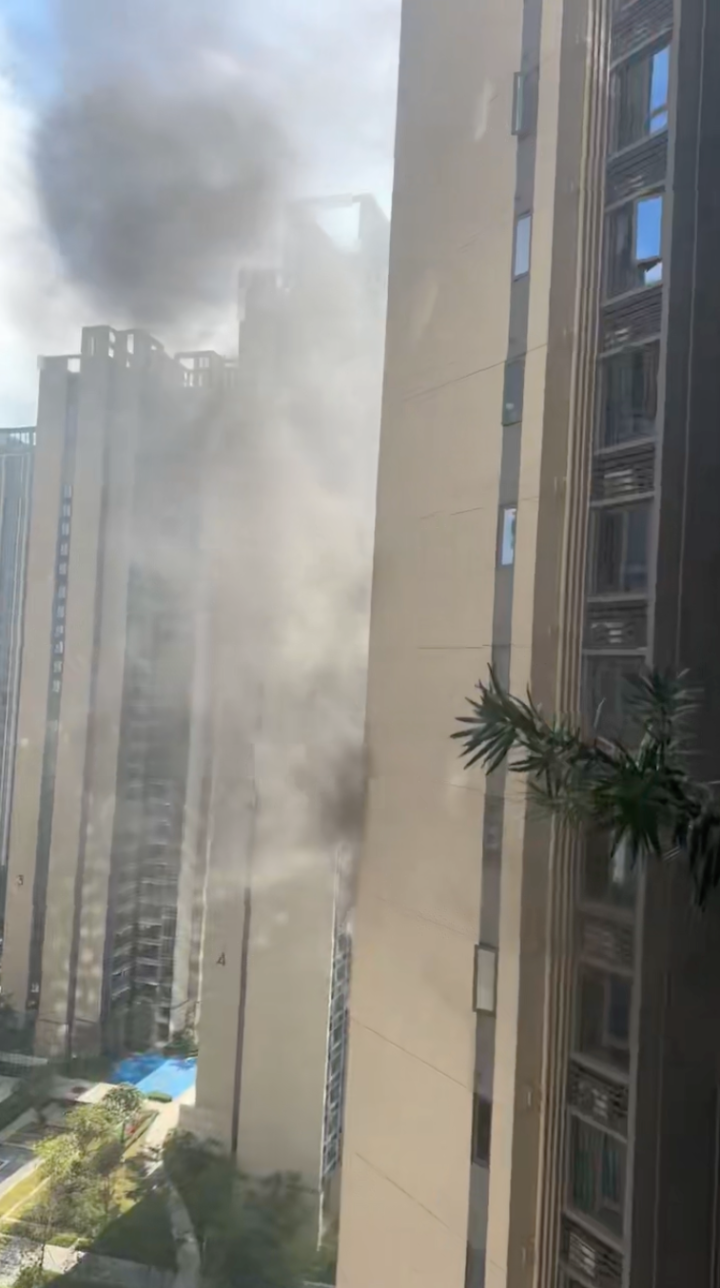 13时57分,该住户发布的照片显示,室内已有烟雾冒出,并配文“已经烧起来了,你们不走不关我的事呀”。很快,房屋开始起火,浓烟不断涌出,并向高层蔓延。多位住户于14时许拍摄的视频、照片显示,该楼栋15层一窗户涌出大量黑烟,在小区外也清晰可见,群内住户纷纷惊呼“快撤离”。