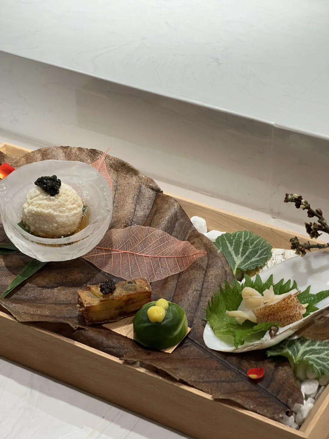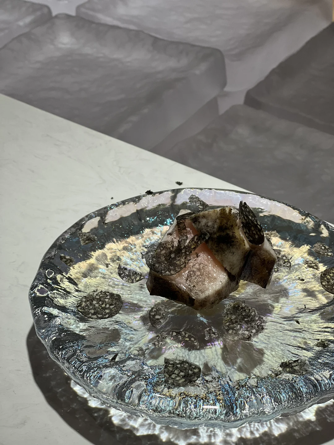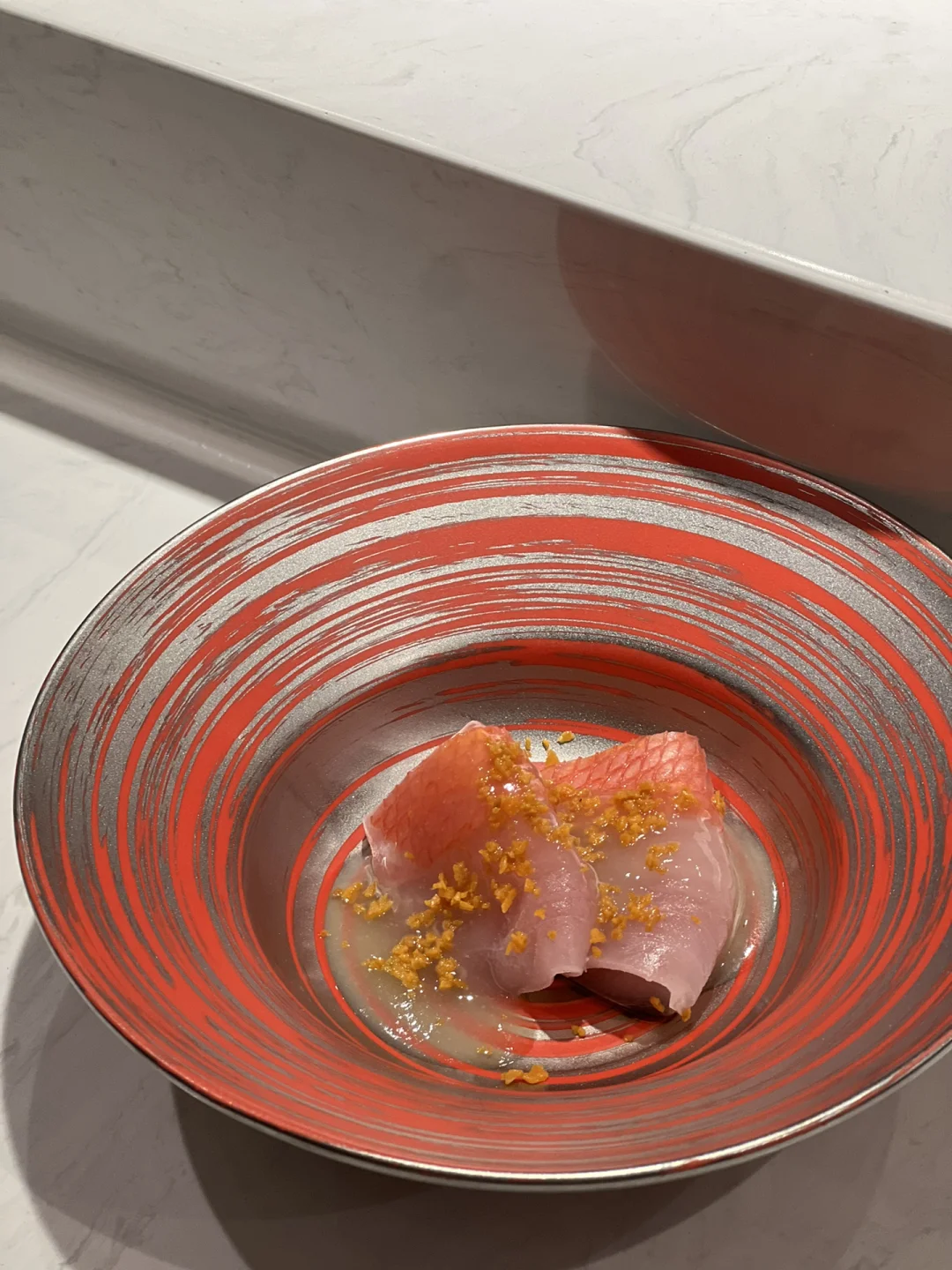 鱼汤金木鲷刺身配乌鱼子肉质紧实有弹性