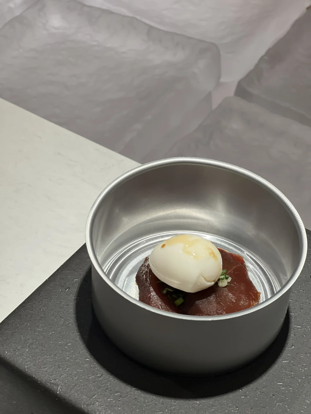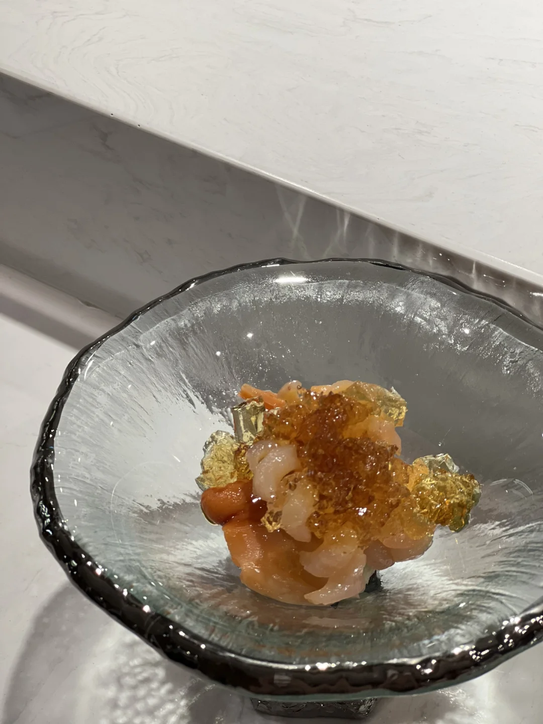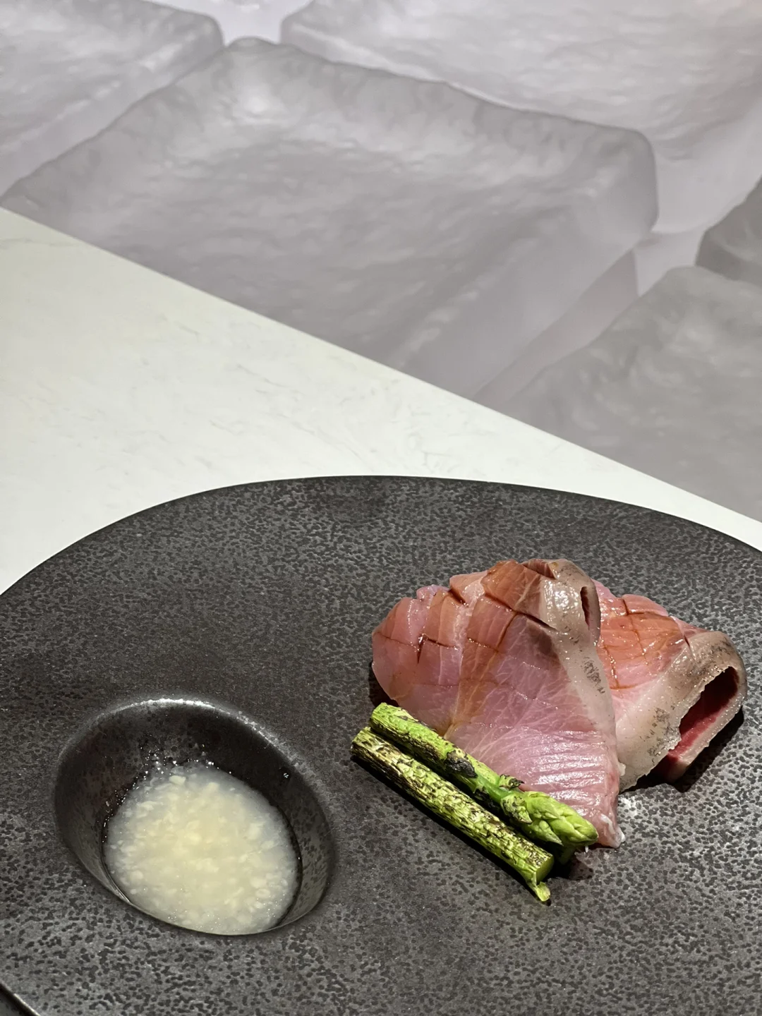鱼汤金木鲷刺身配乌鱼子肉质紧实有弹性