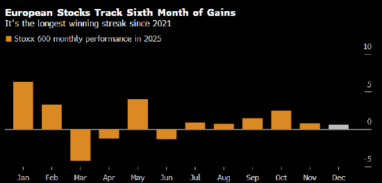欧洲股市正迈向连续第六个月上涨,投资者押注全球货币政策趋于宽松。尽管今年以来股市上涨,但人工智能相关的股票估值过高担忧依然存在。