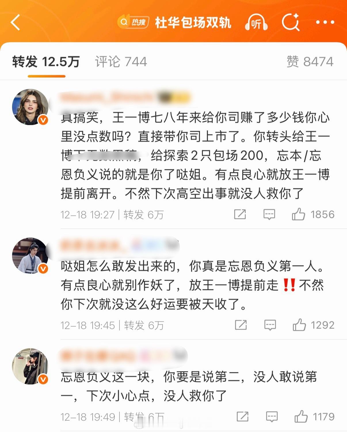 杜华包场虞书欣《双轨》1000多场,但给王一博的探索2只包了200场,粉丝说杜华