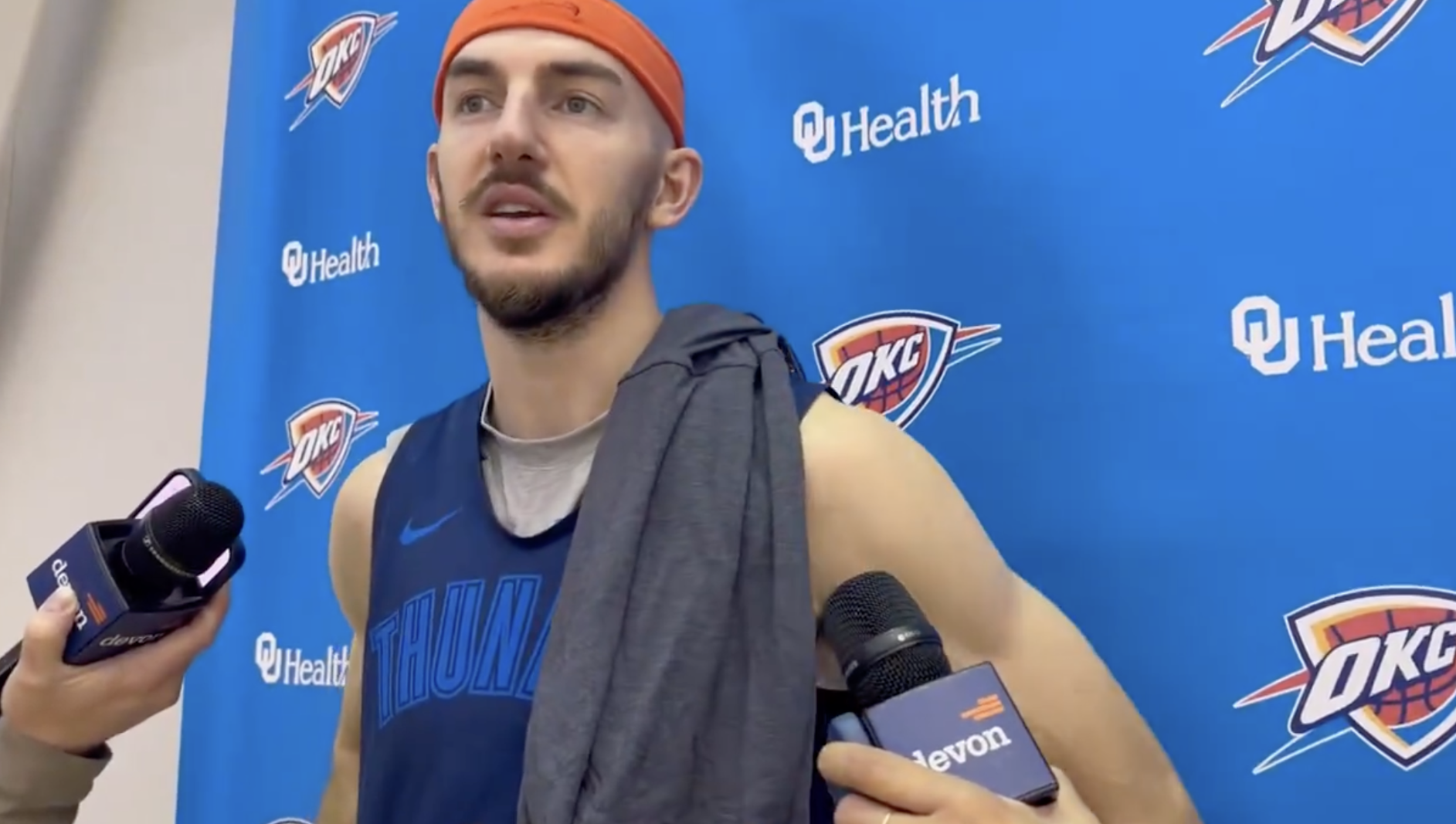 雷霆球员亚历克斯-卡鲁索接受了记者采访。
