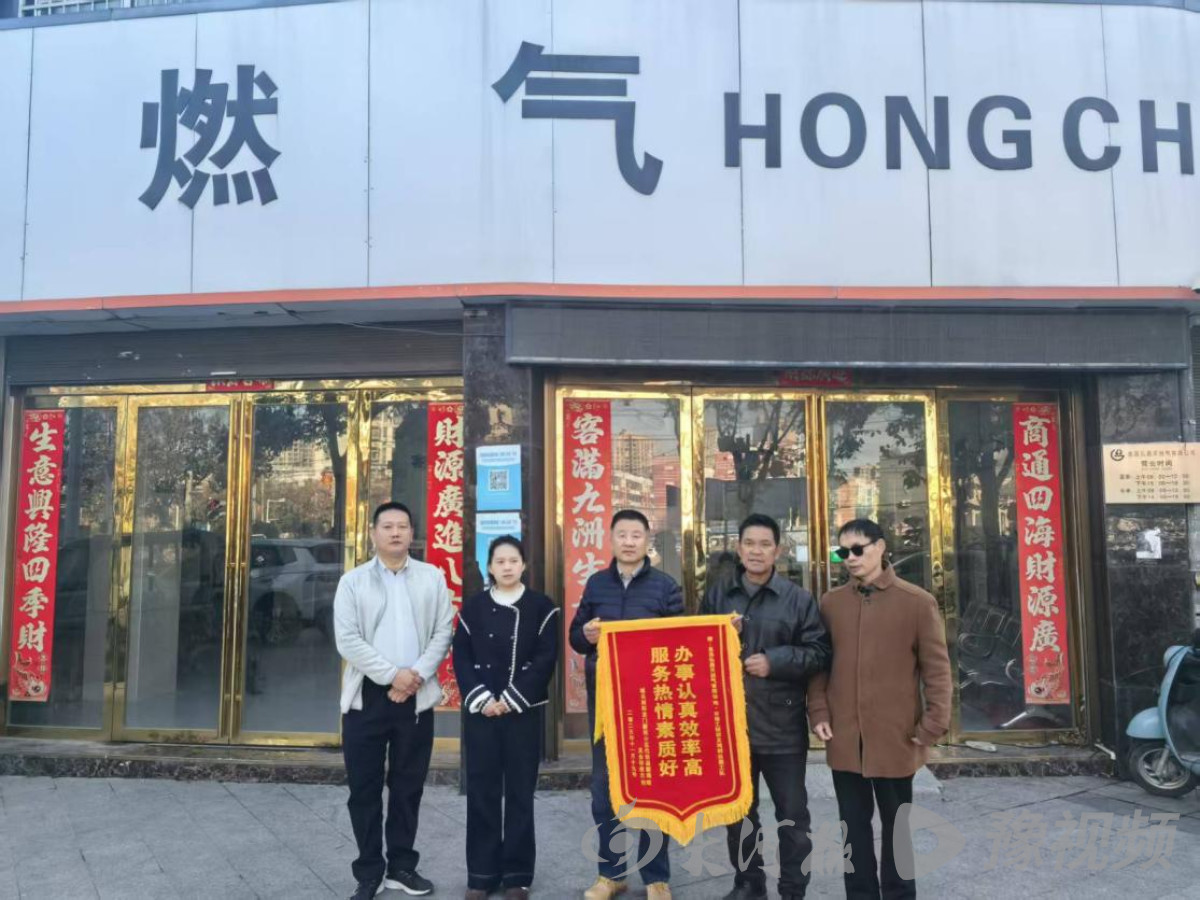 近日,信阳市息县西街龙门新苑小区业主代表将写有“办事认真效率高、服务热情素质好”字样的锦旗送到弘昌燃气息县公司负责人手中,对该公司的服务表示感谢。