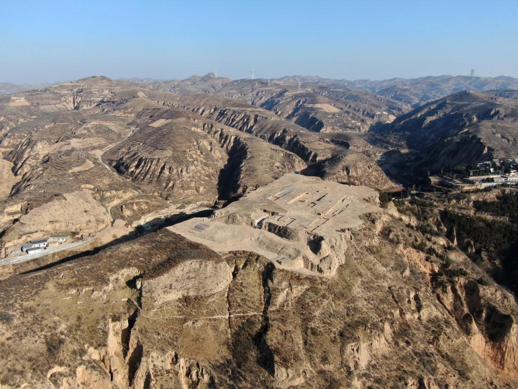 12月9日拍摄的陕西清涧寨沟遗址寨塬盖夯土建筑群(无人机照片)。新华社记者李一博摄