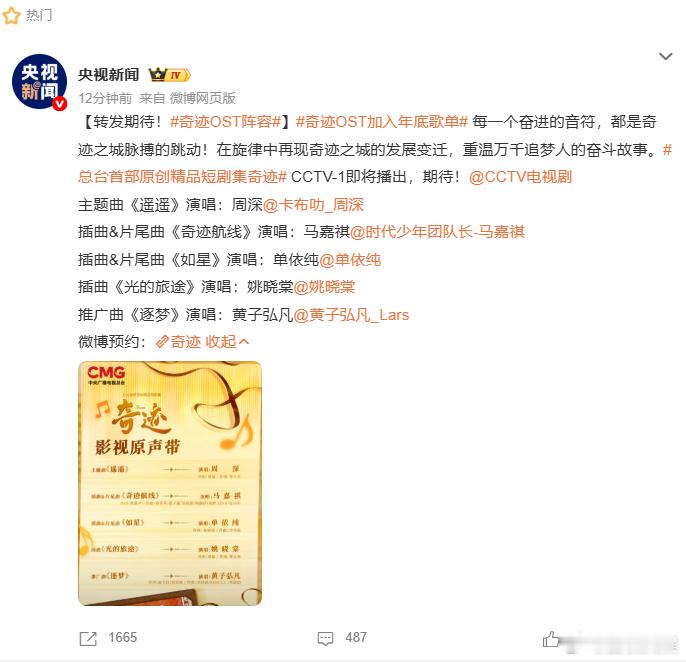 马嘉祺单依纯携手献声奇迹,一人插曲一人片尾曲,跻身 ost 歌单阵容,歌声传递的