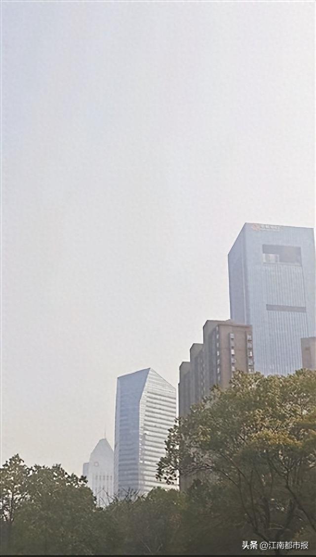 ▲12月18日上午,南昌市红谷滩区雾霾中的大楼。