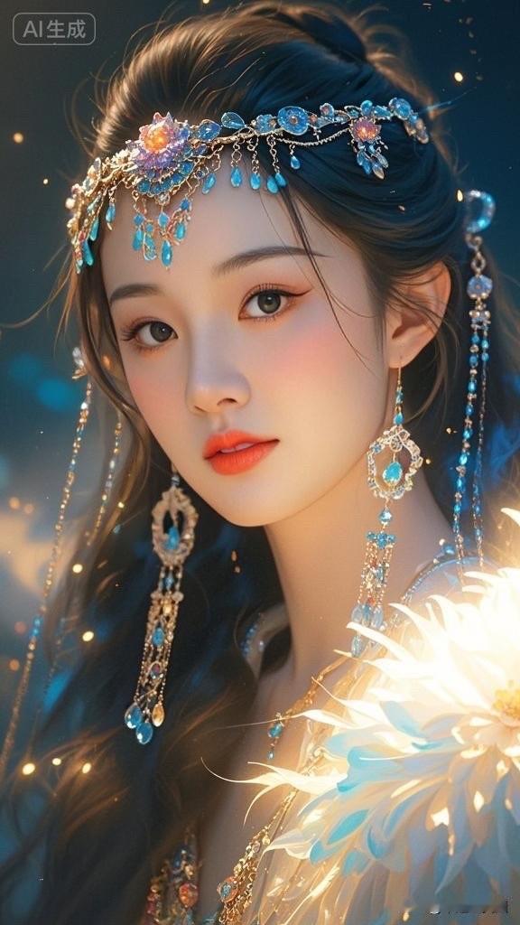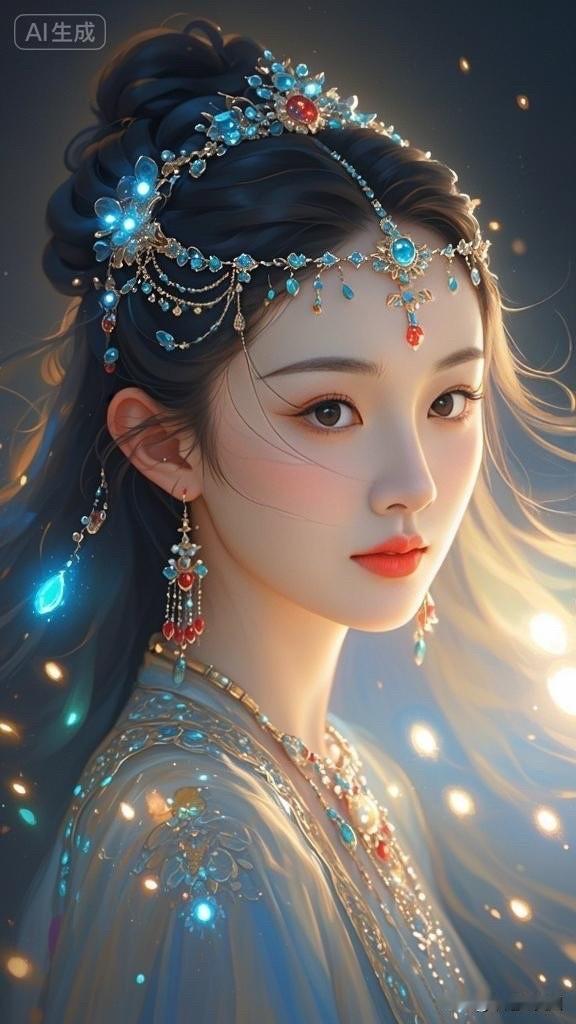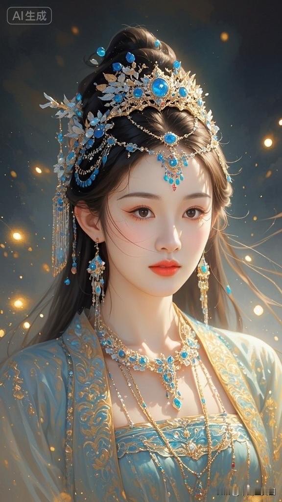 梦幻古风美人,蓝宝石头饰闪耀夺目!