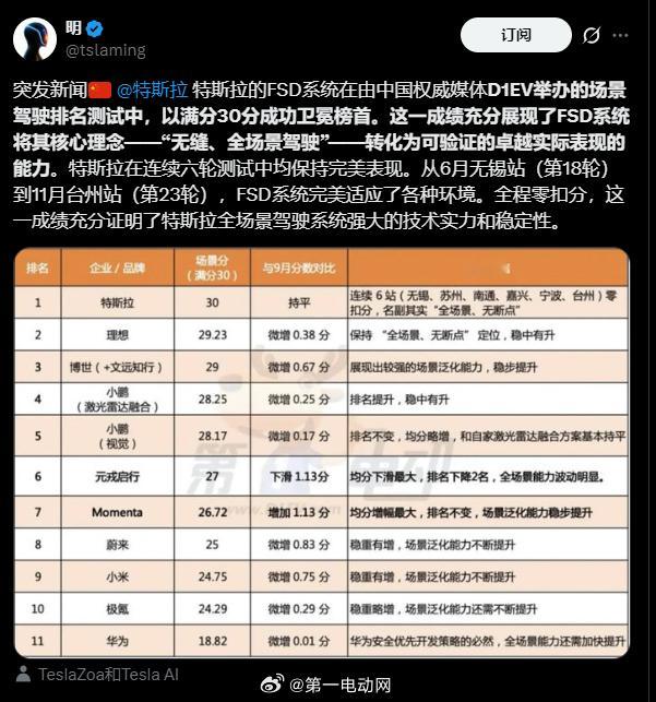 我们的第二届中国智驾大赛中国智驾战力天梯榜 也被特斯拉相关账号转发了,非常惊喜比赛的结果被更多品牌和主机厂关注,后续的比赛大家继续监督,我们会继续努力,1月10日温州站见 特斯拉