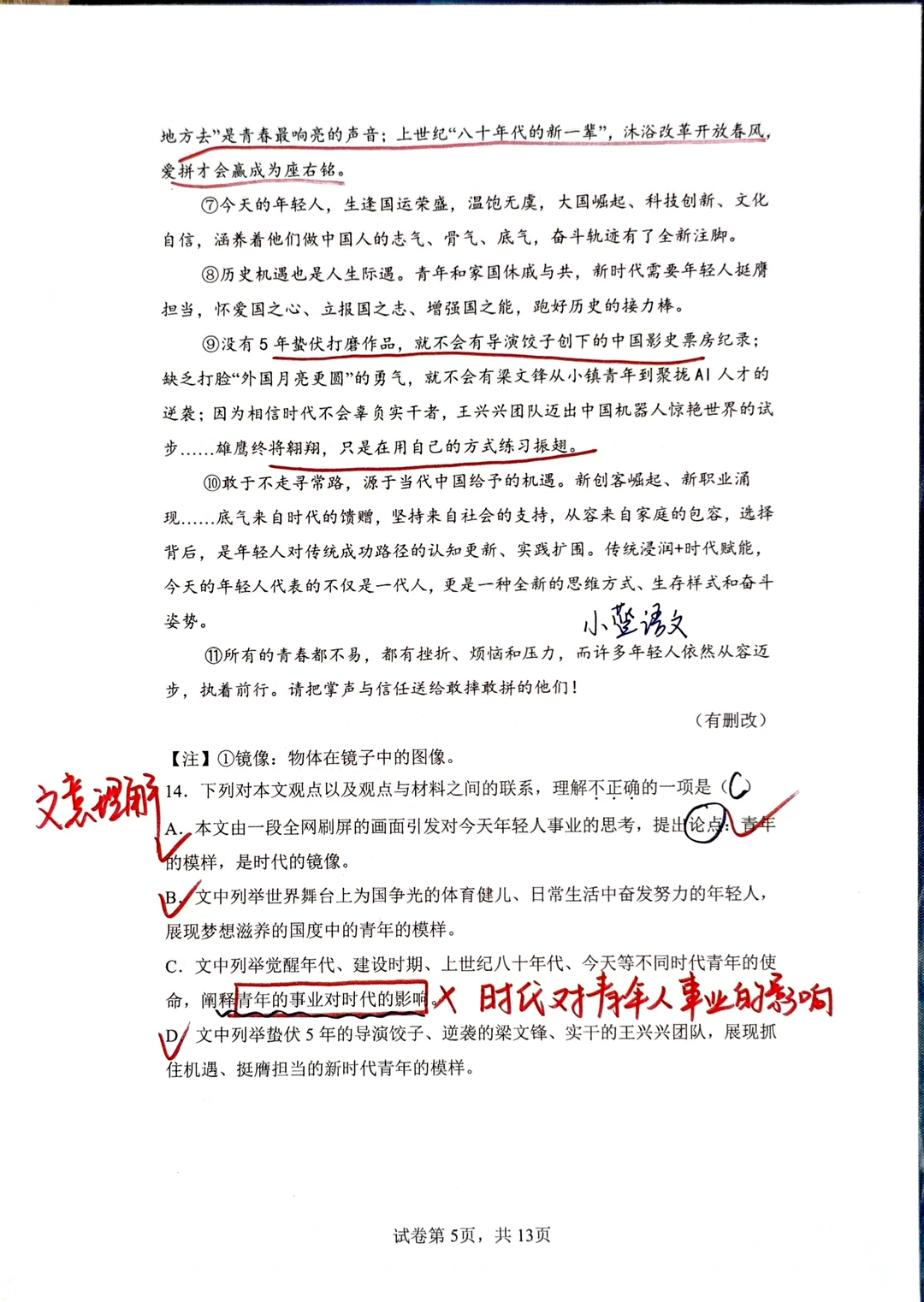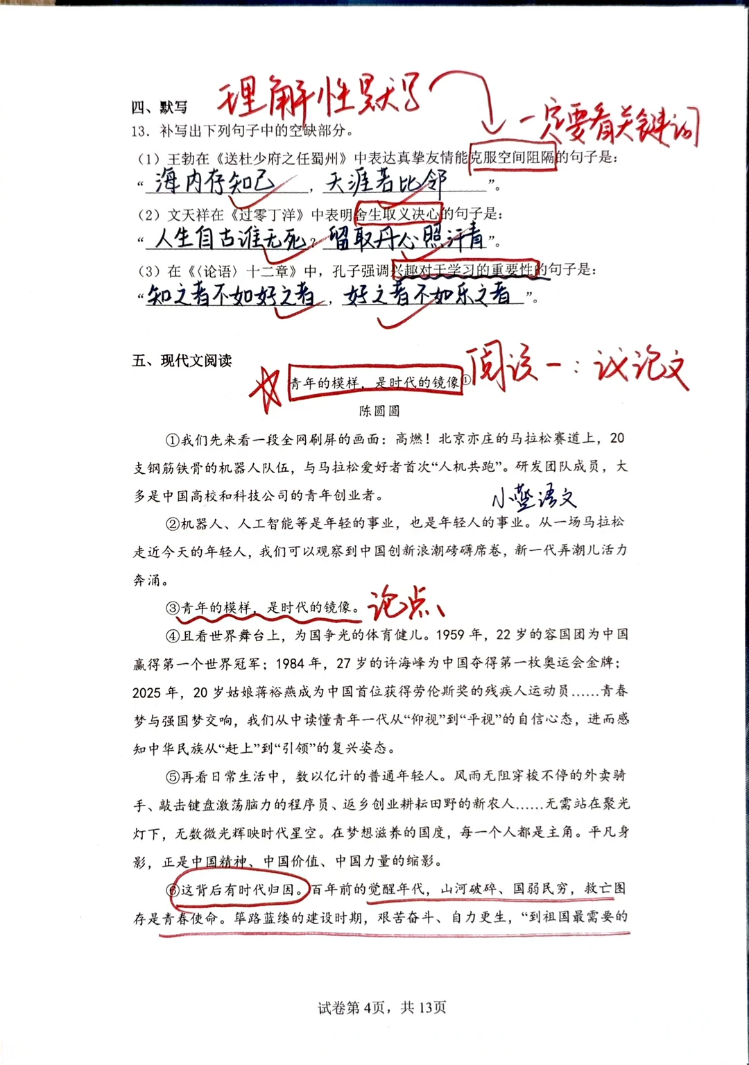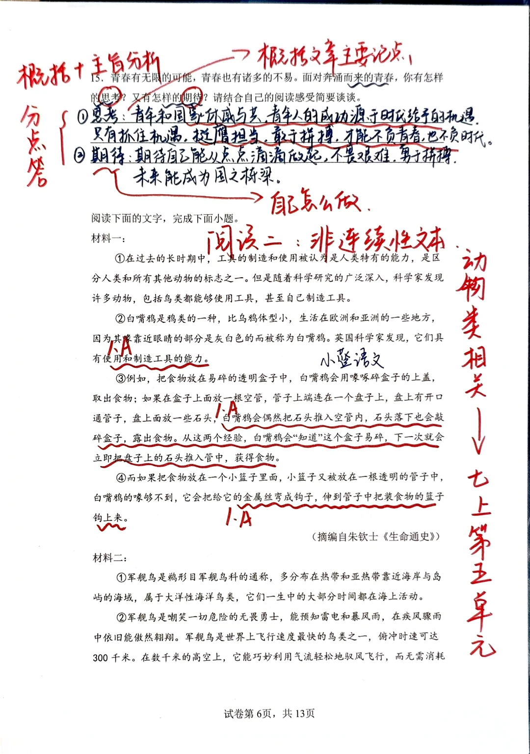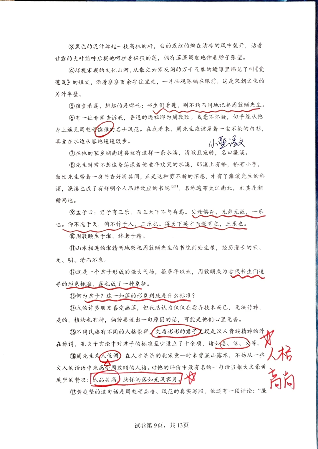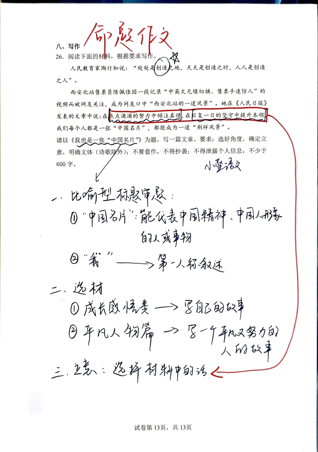 [星R]三、文学性文本阅读的问题提醒我们一定要对课内课本非常熟悉,课本内的每一篇文章,每一个知识点都要知道是在什么位置,都要知道在讲什么:例如《爱莲说》的主旨,就要迁移到阅读理解的问答题中回答;再例如最后一题“写法借鉴”,实际上就是在问“人物传记的写法”,八上第二单元的语文课本内有一模一样的内容。