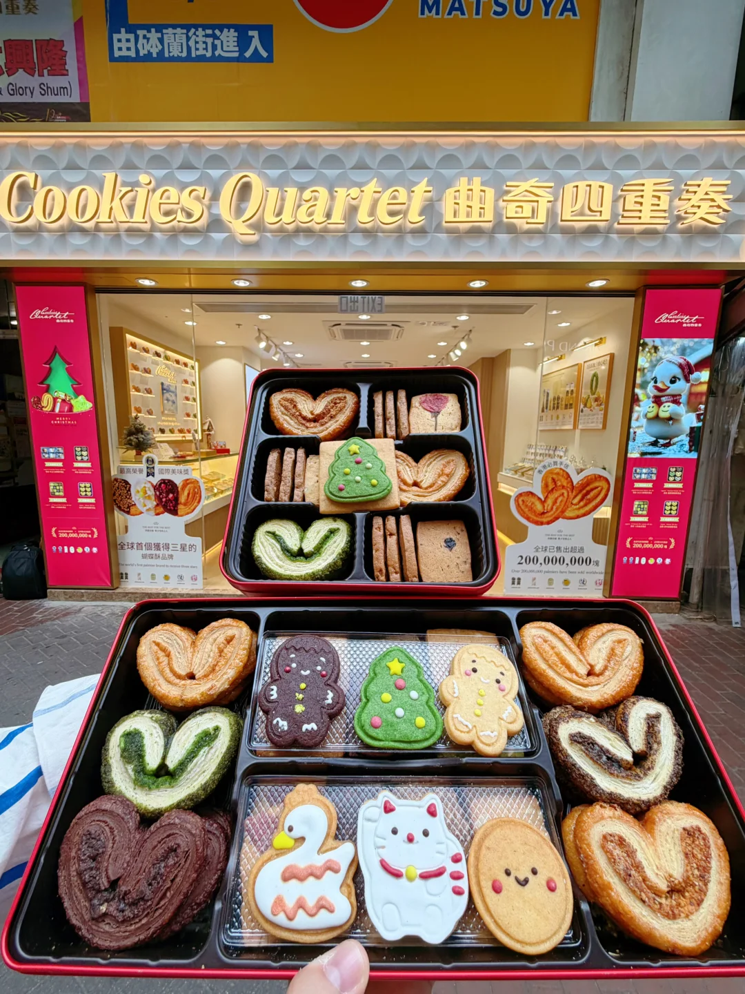 ✔️伴手礼:来到香港肯定还是要带回来礼物的!我们选的是曲奇四重奏,口味多还可以试吃,奶香浓郁且甜度刚好