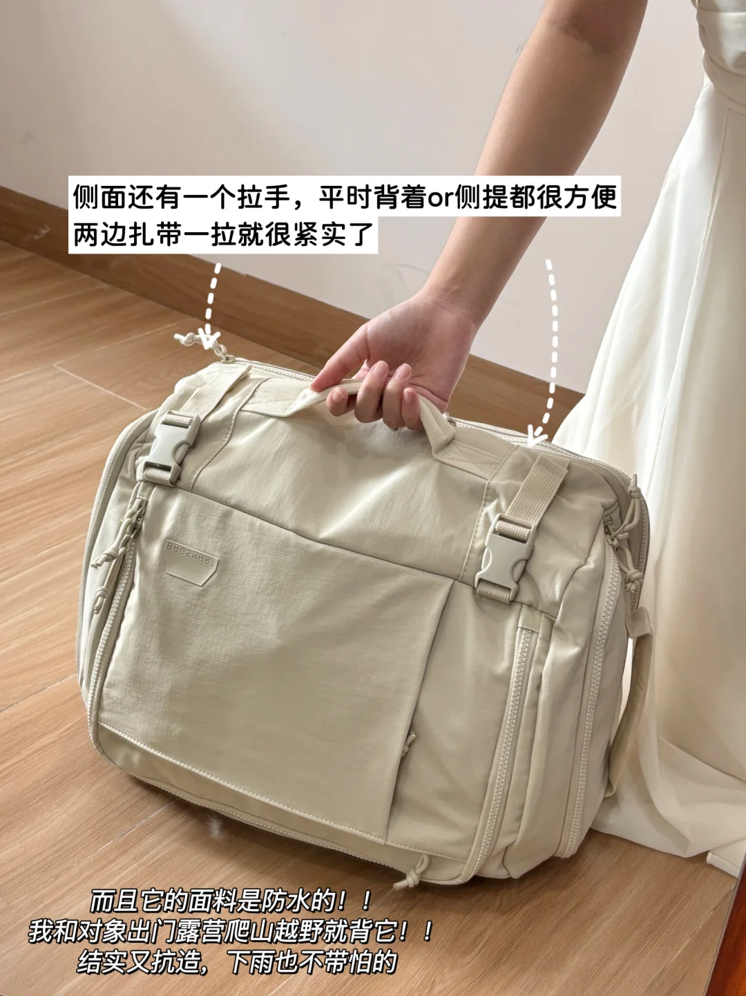 侧面还有一个拉手,平时背着or侧提都很方便