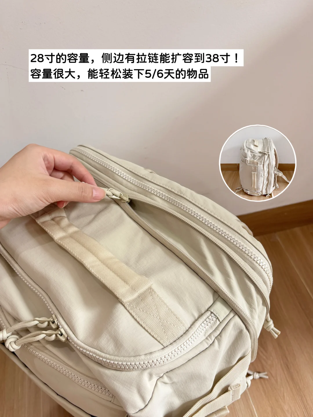 28寸的容量,侧边有拉链能扩容到38寸!
