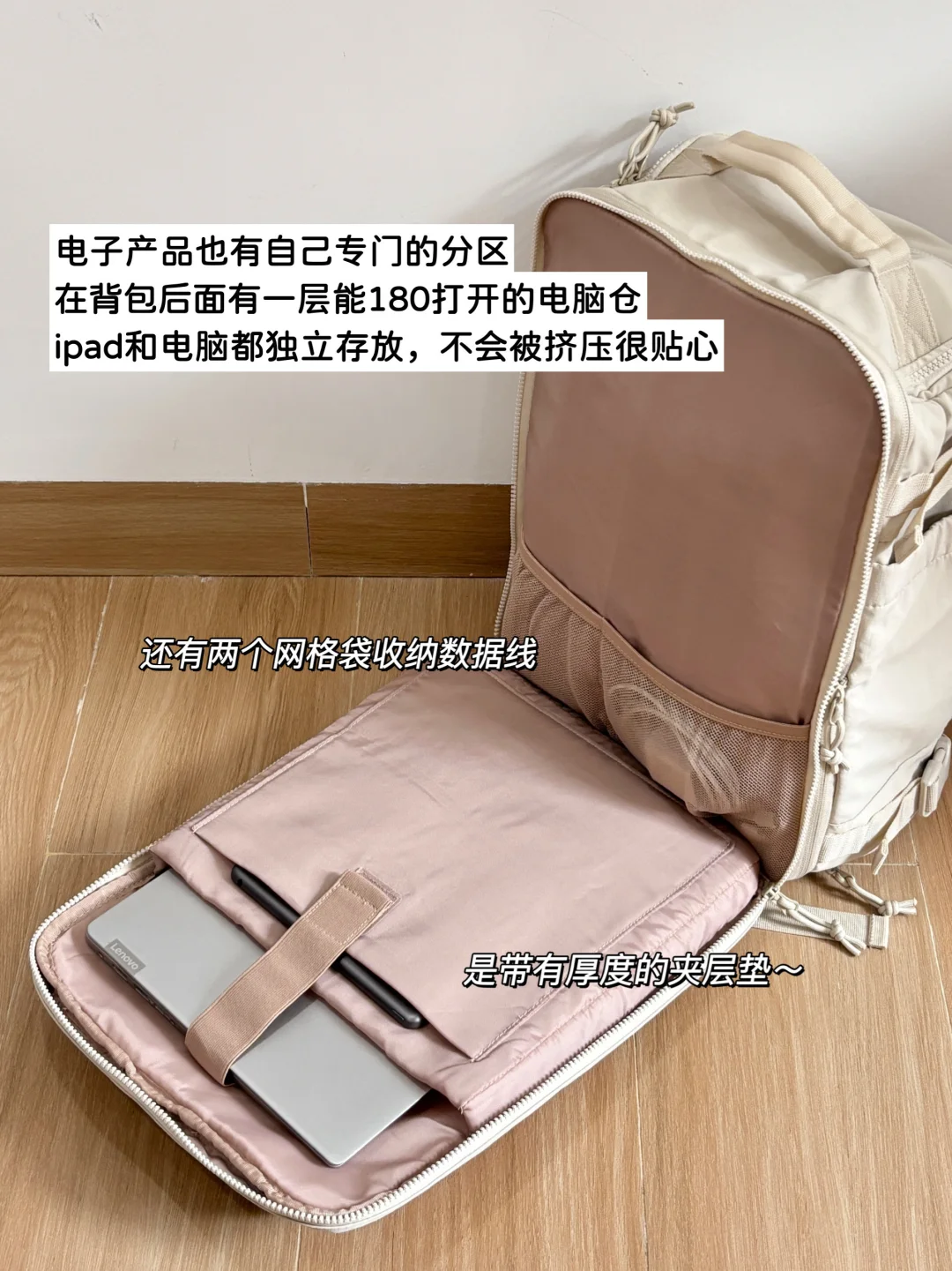 ipad和电脑都独立存放,不会被挤压很贴心