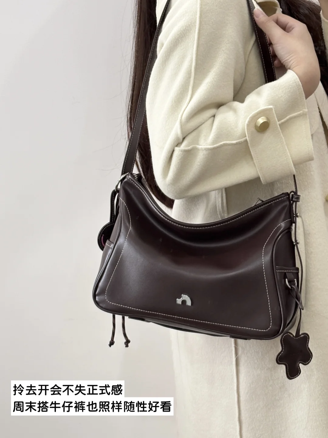 款式我大多会买经典百搭款,像黑白、棕色、米色这类稳妥,随便搭衣服都不出错,背几年依旧大方得体。