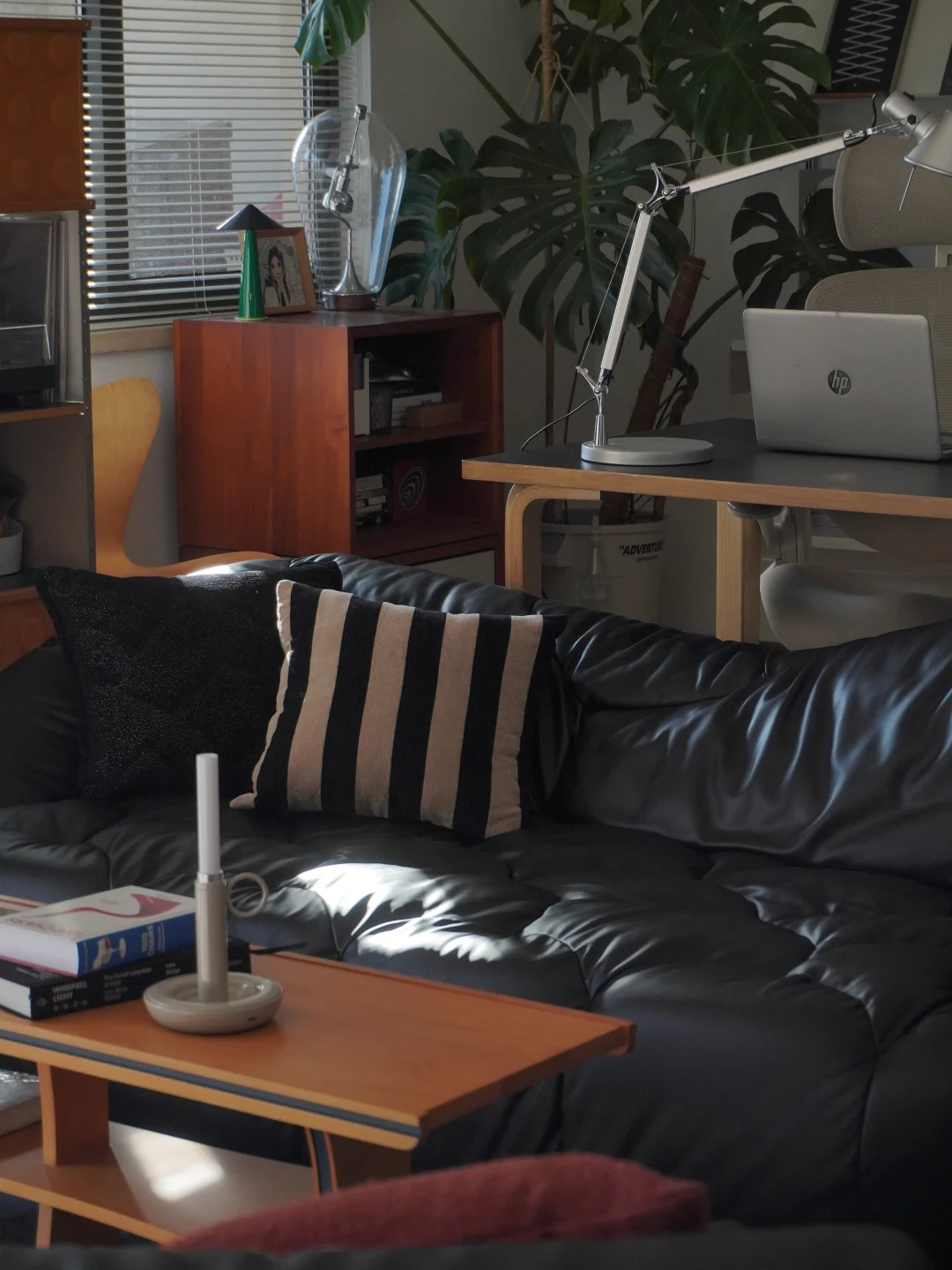 今天气温的骤然下滑 让我几乎换掉了除顶灯以外客厅所有的冷光源 就连陪伴了3年的落地灯也没能幸免 茶几、边几、书柜和置物架也换成多以木色为主 在如建筑般线条细散的柔光下 让家里的曲线、色彩结构自然的呼应 也便有了对抗凛冬的棱角 - 在暖洋洋的实感下 体会到了天越冷 家就越暖的含金量 汪的欢快也仿佛成为了家装的一部分 或静或动 甚是明媚 家也会在生活中慢慢生长出自然安逸的气质