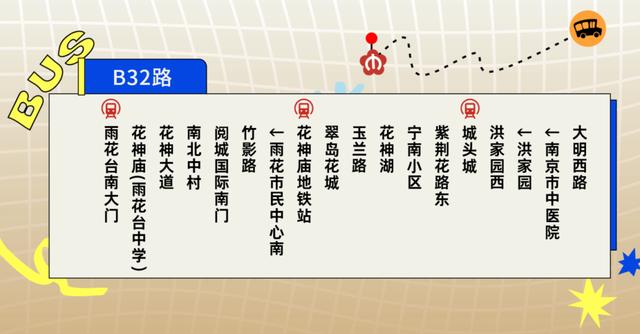 B32路主要服务宁南片区,串联雨花台中学、雨花市民中心、南京科技馆、南京市中医院等重点场所,既能满足市民通学通勤、就医休闲等日常出行需求,还可直接衔接地铁1号线、3号线、10号线,让市民从生活场景到地铁站,实现“一步直达”;