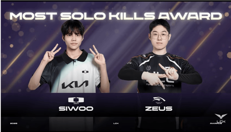 2025LCK最高单杀次数奖——DK Siwoo、HLE Zeus