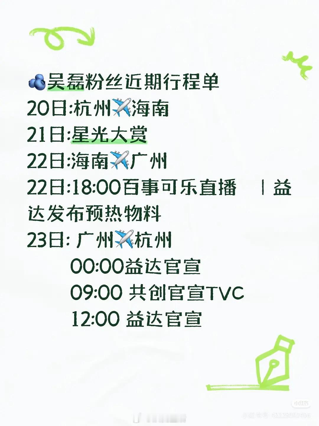 吴磊今年新增的第11个商务要来啦,近期行程单也是活动不断,真的很羡慕吴磊的状态了