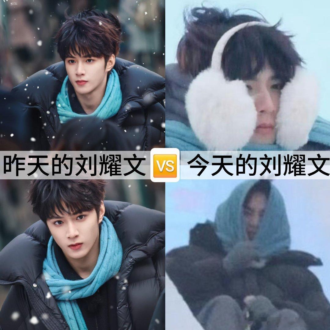 哈哈哈哈哈哈刘耀文已经冷到把耳罩围巾当脸罩了小斗还我男神刘耀文!!!刘耀文脸罩