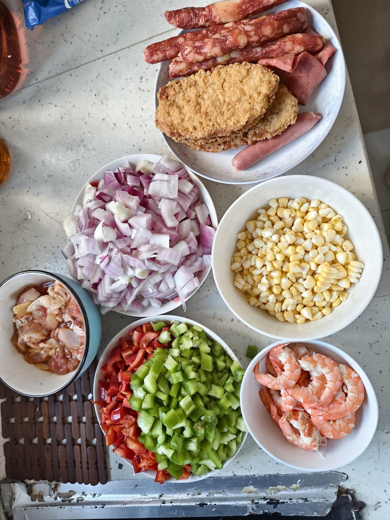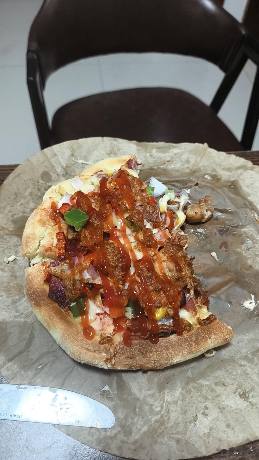 用了一天的时间手工做了一些披萨,我女儿放学回家马上就烤了一个来吃,可能是饿急了,连吃一大半,然后我女儿来一句越吃越不好吃,我是第一次做披萨,饼皮确实做的太厚了,口感偏硬,没有买的那么软,也有可能是没加低筋面粉的缘故,我全部用的是高筋面粉,我一天的成果,凌晨一点多就起床一直忙到晚上,被我女儿一句话就给否决了。唉!