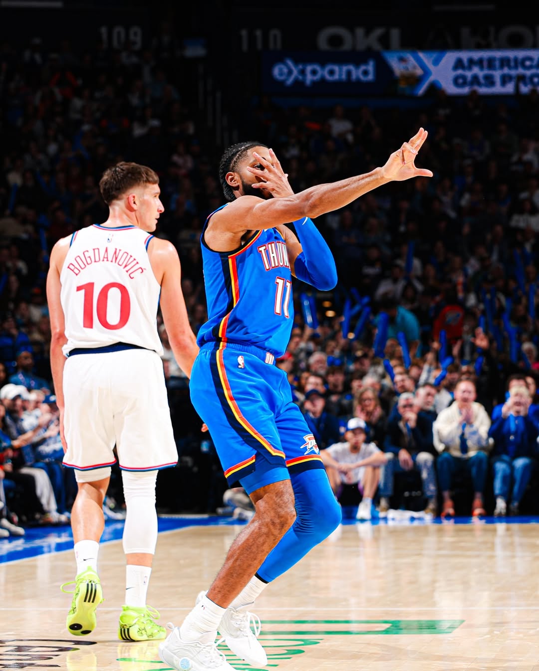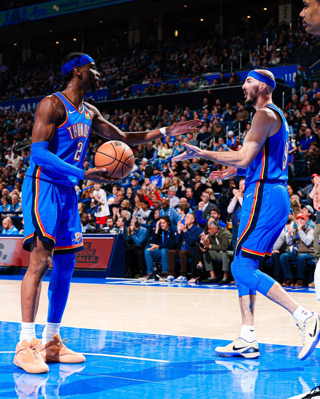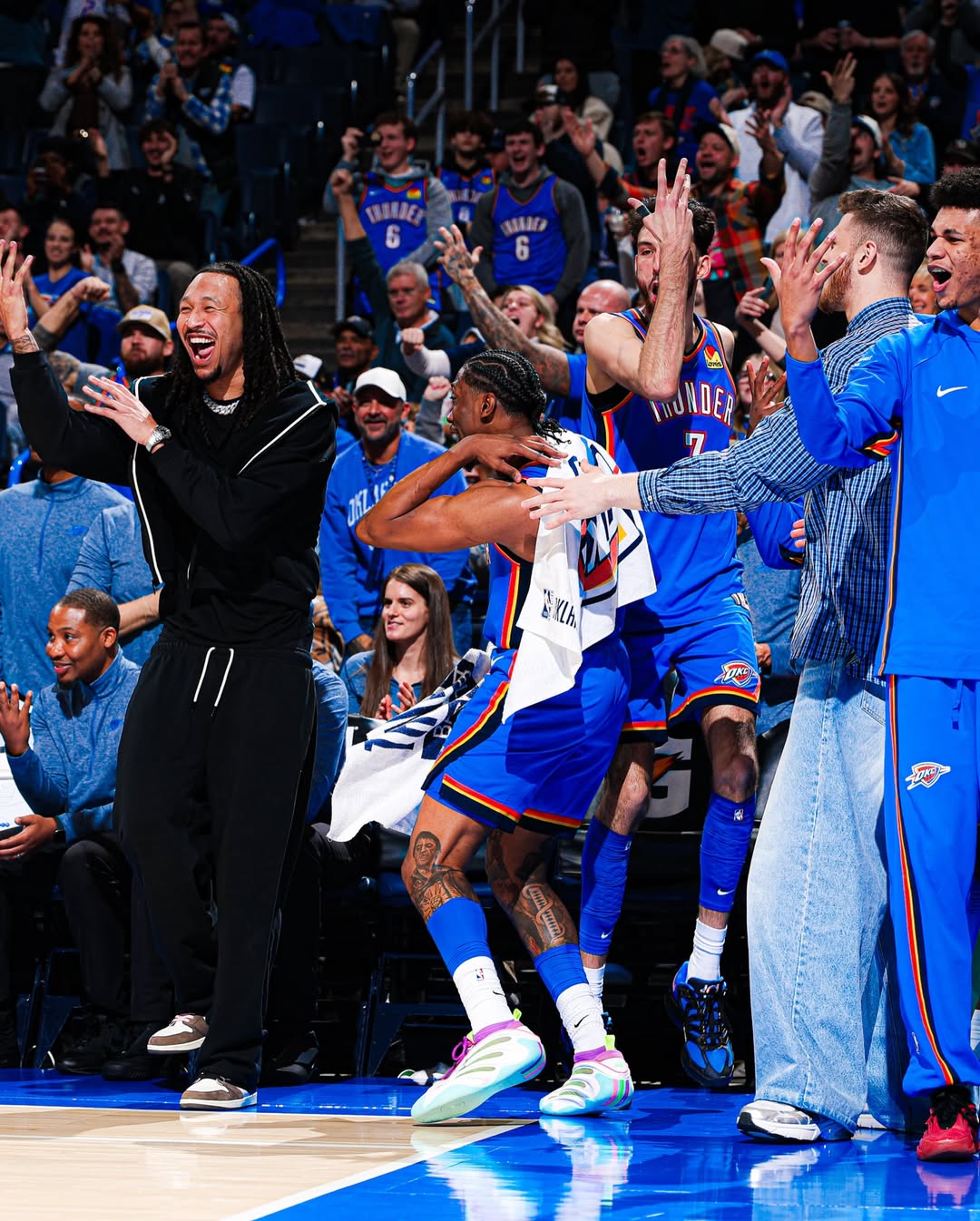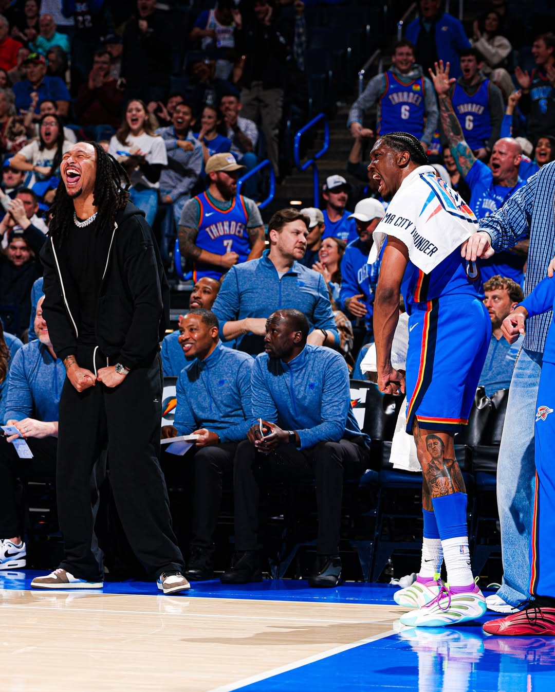 赛后,雷霆官方ins发布动态,晒出一组球员们的赛场照。