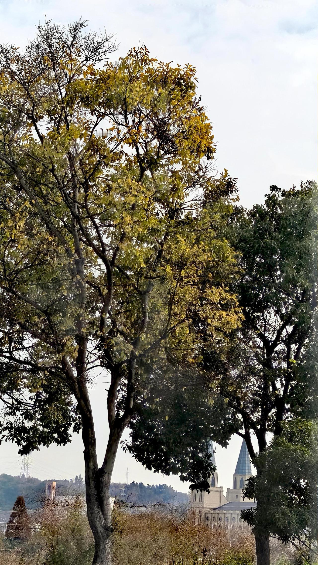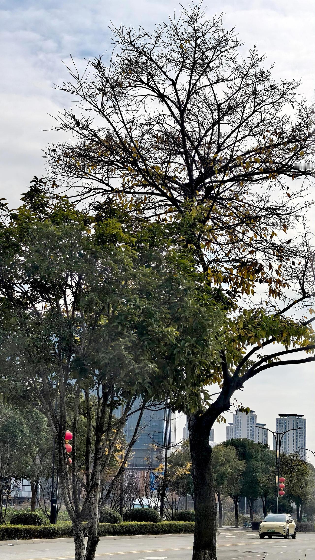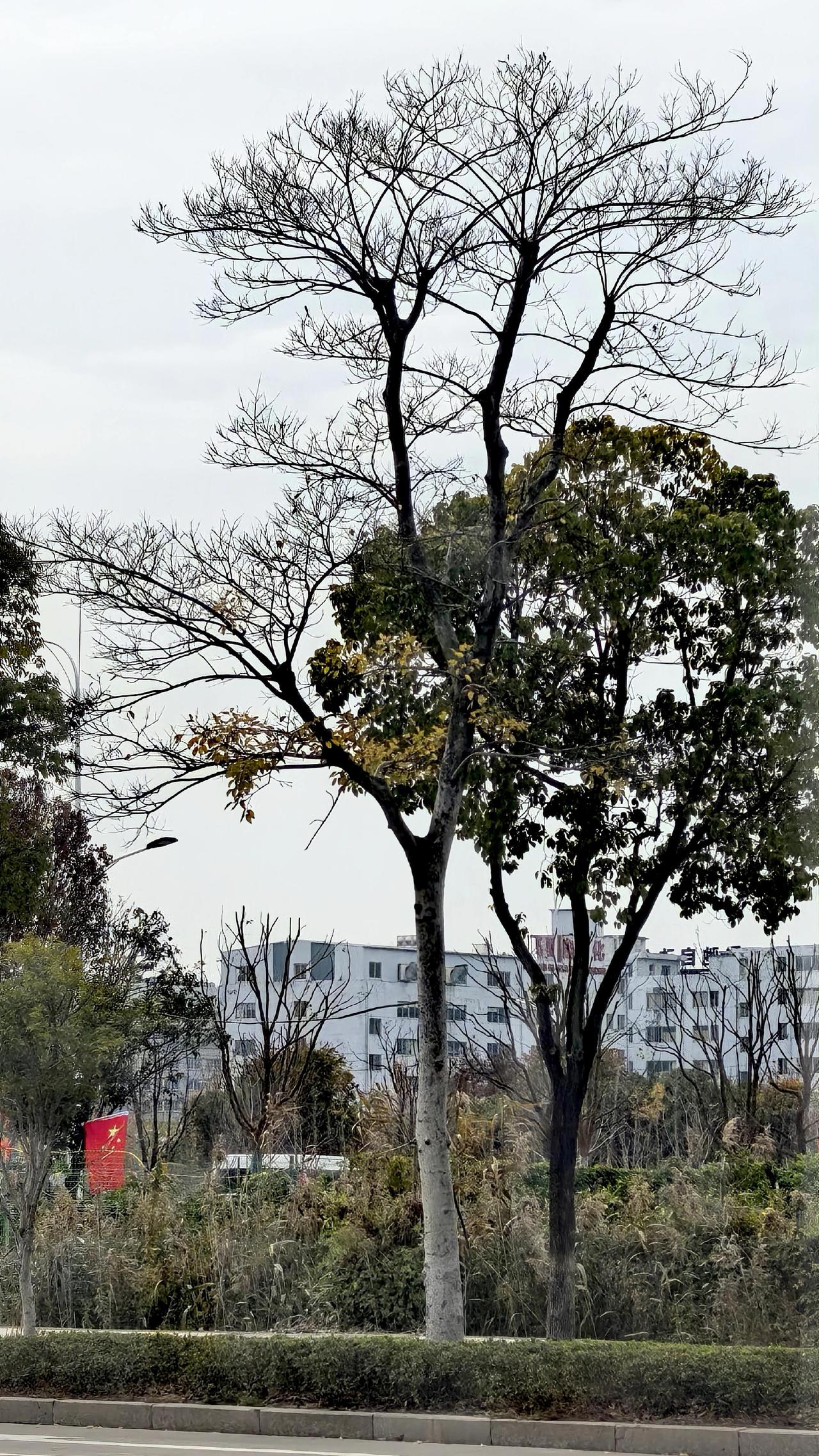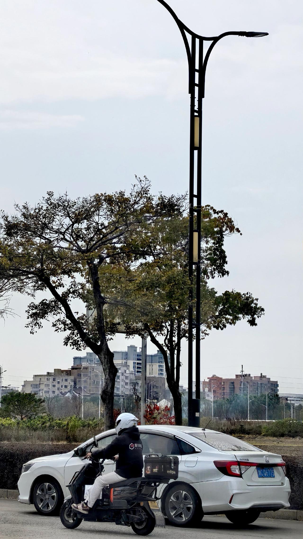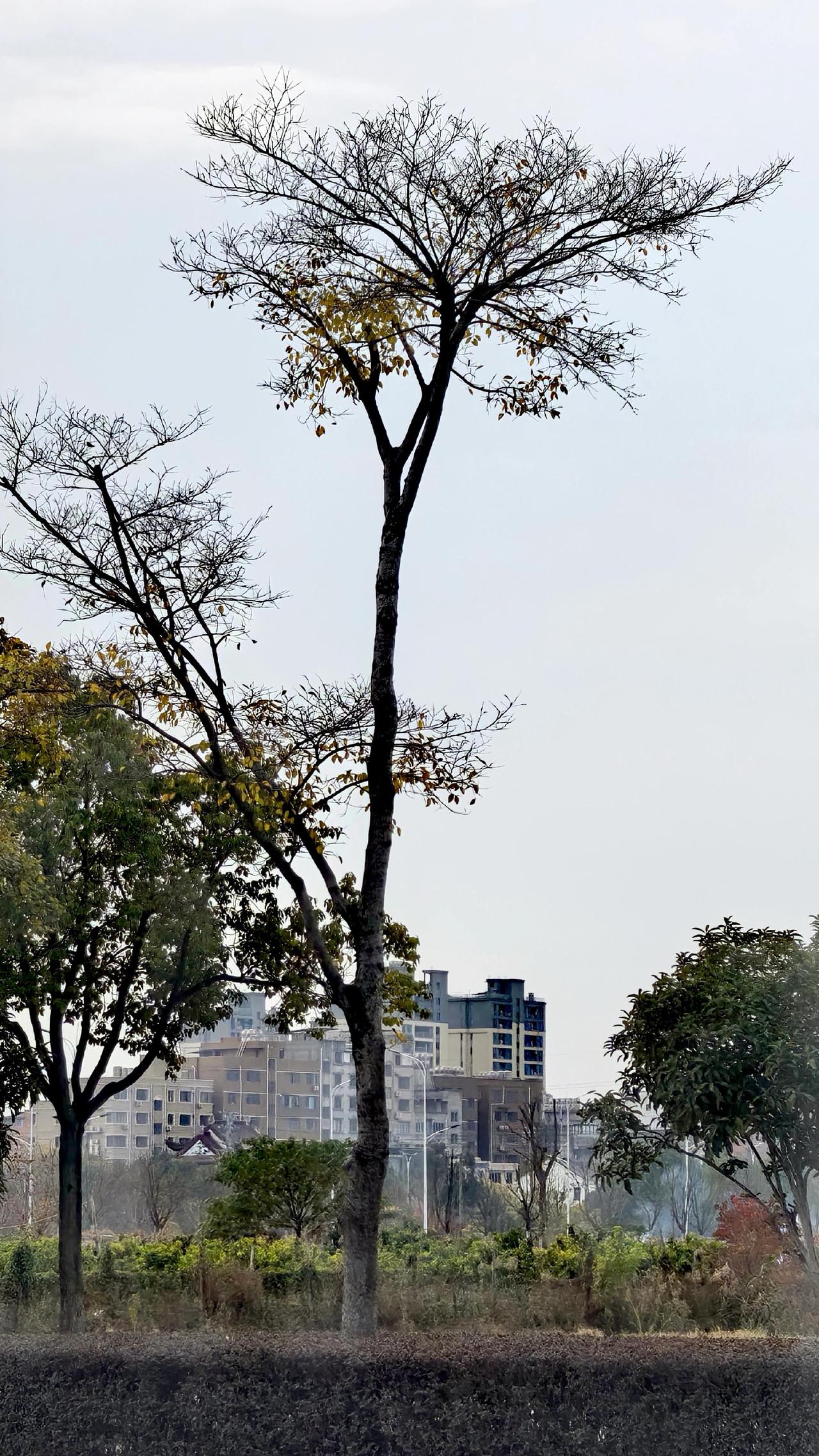 公路树枝线条风景线城市风光手机摄影路拍