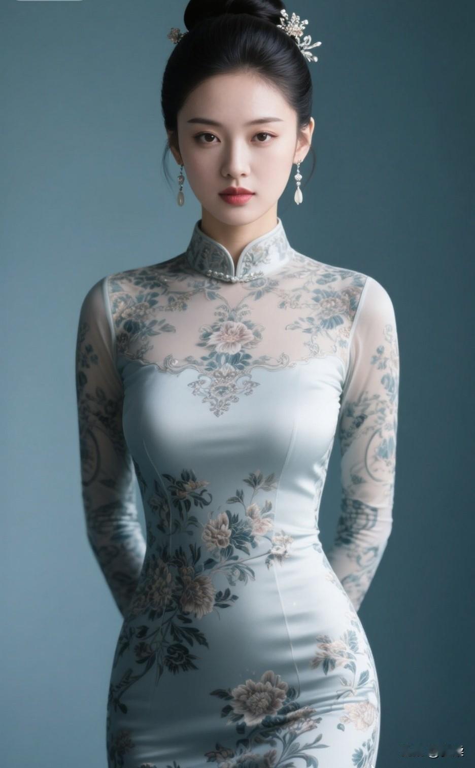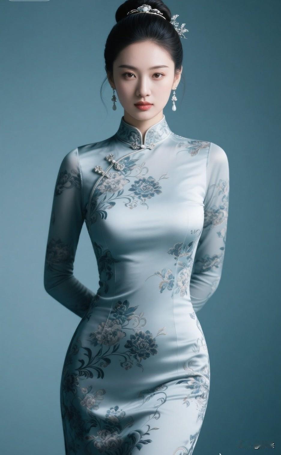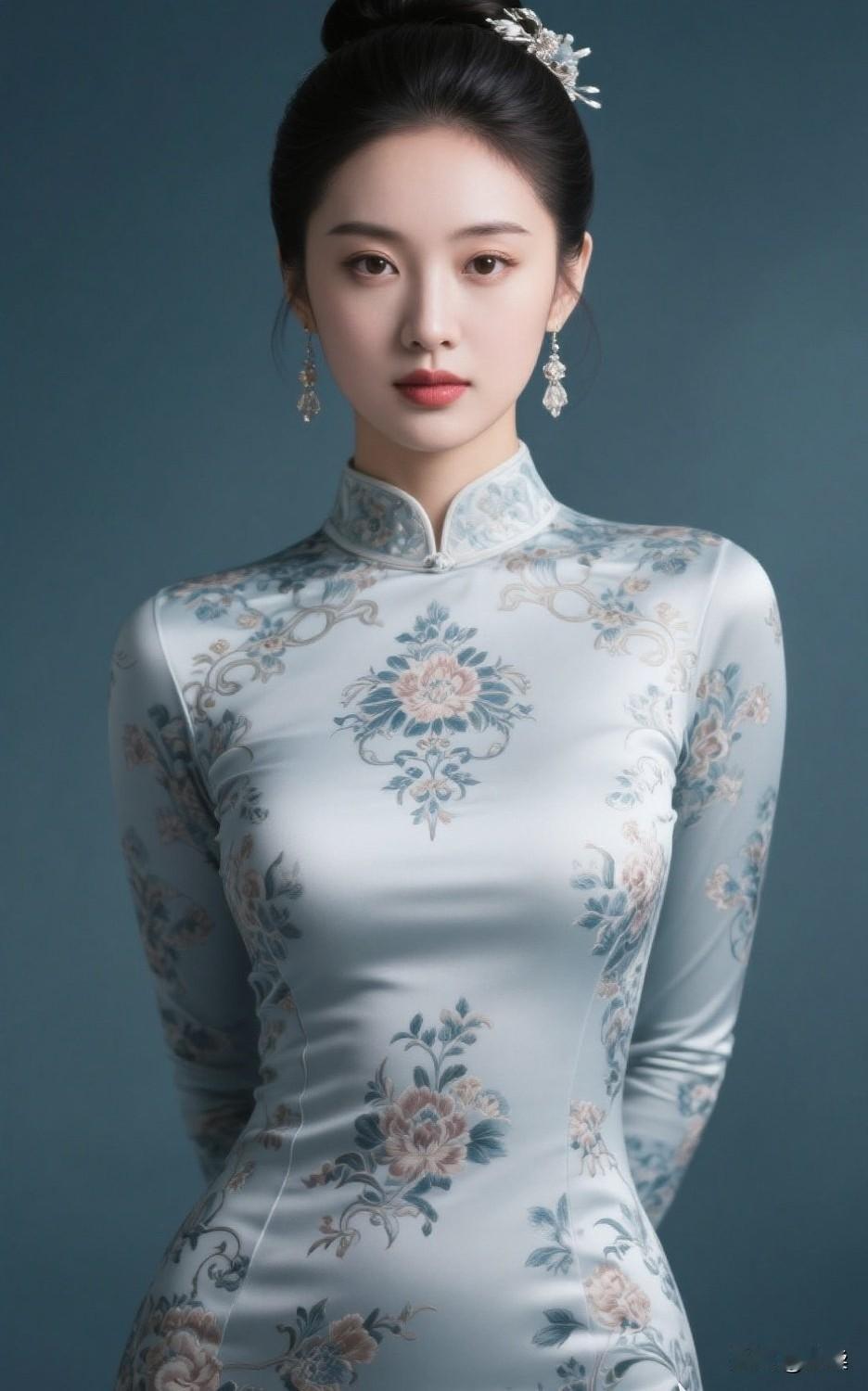 姐姐穿花色旗袍,美得令人心动!旗袍贴身剪裁,勾勒出曼妙曲线。立领盘扣藏典雅,花卉