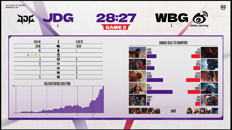 JDG 1-1 WBG:各位置先后发力,JDG次局扳回一城