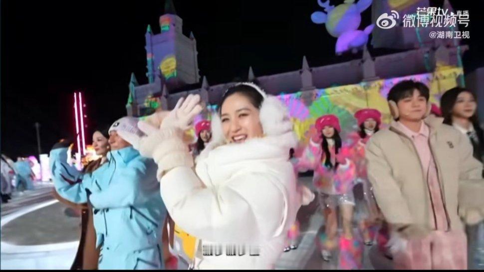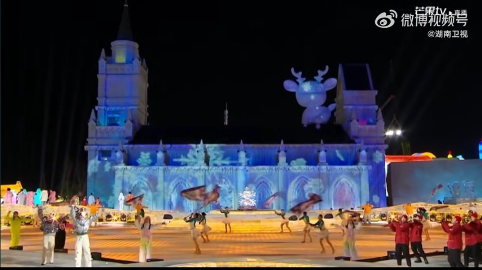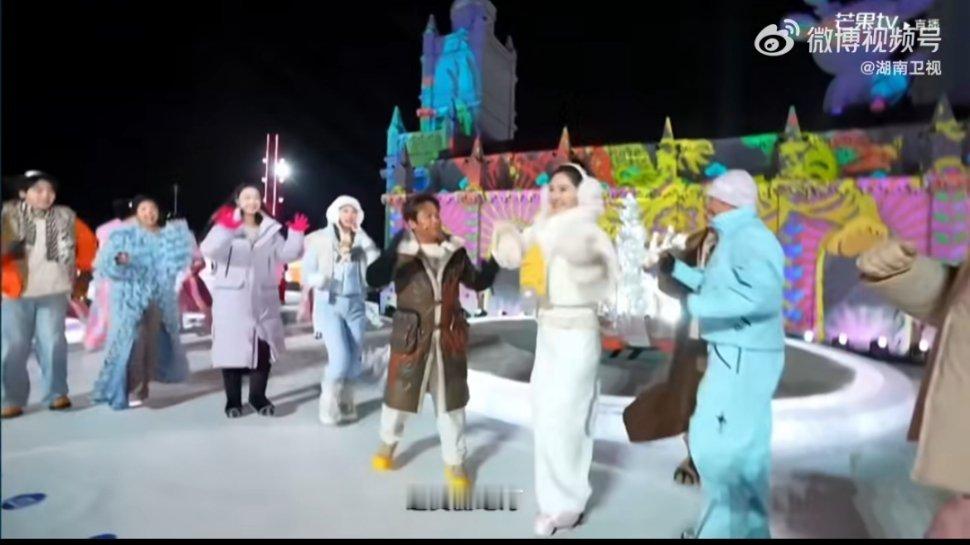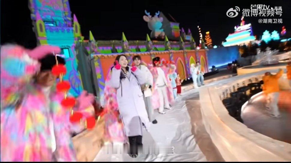 芒果晚会开场秀人挤人长春冰雪夜直播开场好多人呐,南北两队嘉宾同台合唱《大东北是我