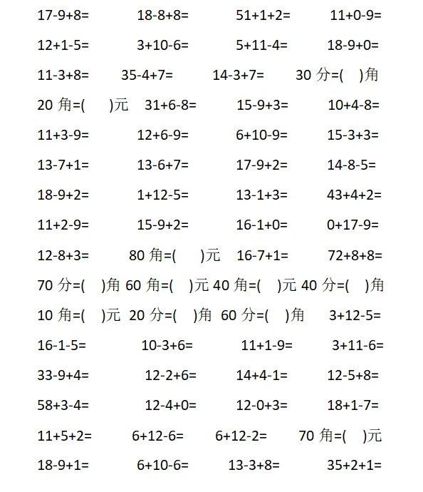一年级数学 计算题 数学
