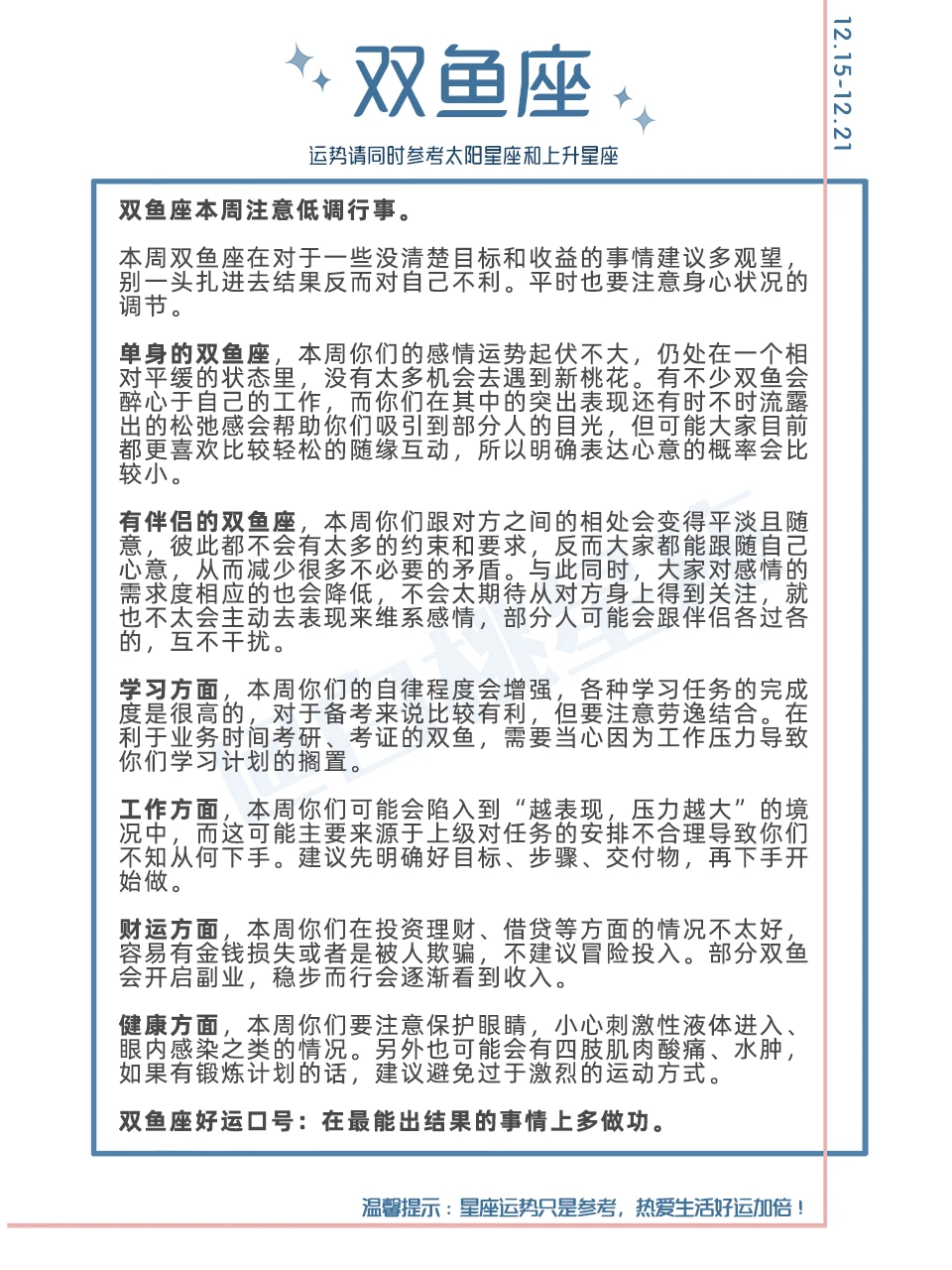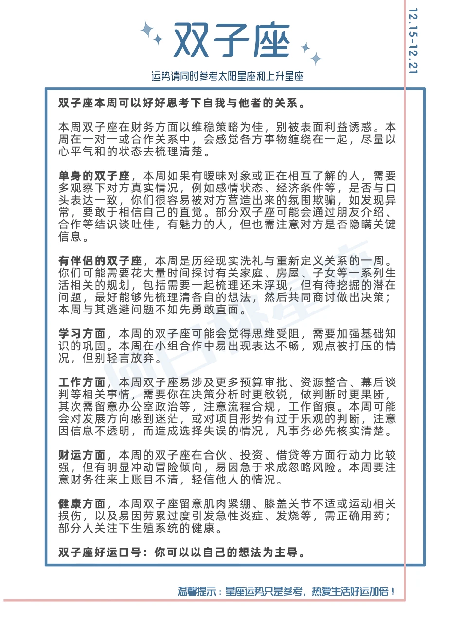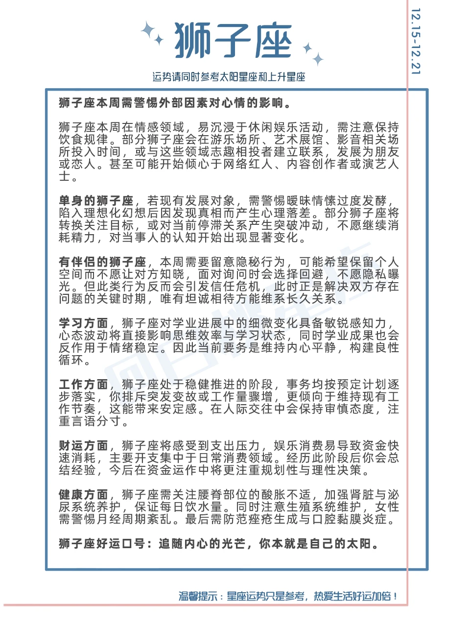 温馨提示:星座运势只是参考,热爱生活好运加倍! 星座