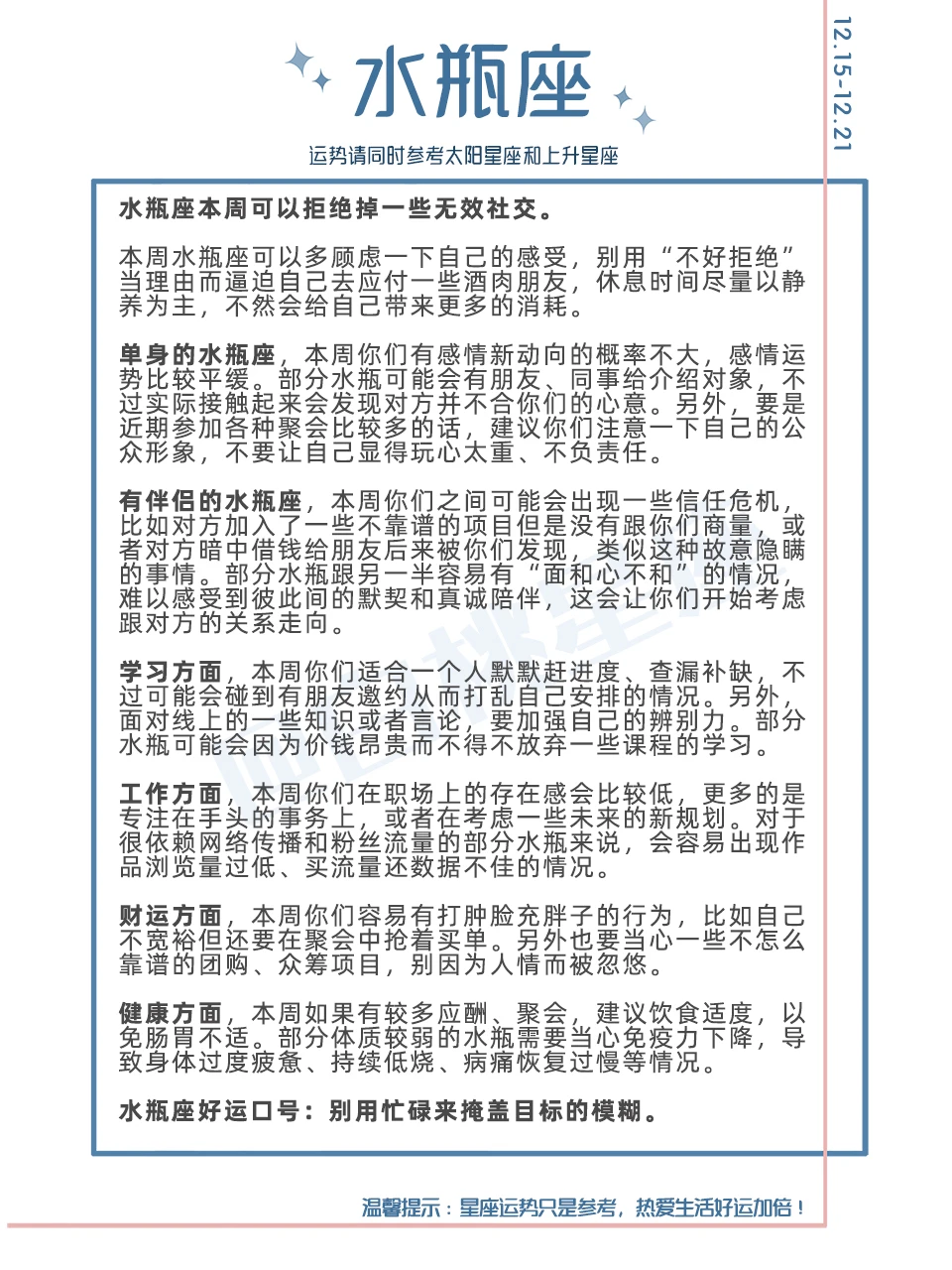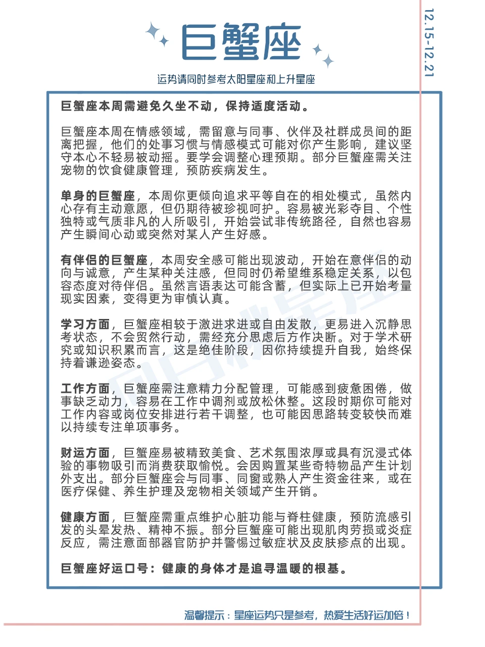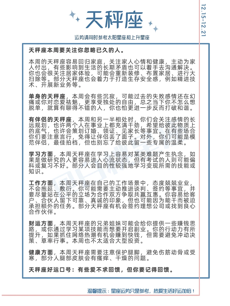 温馨提示:星座运势只是参考,热爱生活好运加倍! 星座