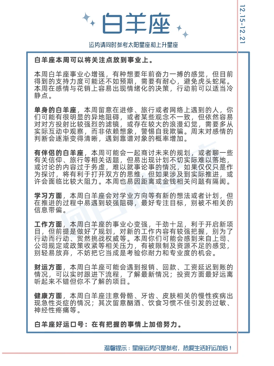 2025年12月21日十二星座每日箴言白羊座♈克服眼前困难等待迎接曙光金牛座