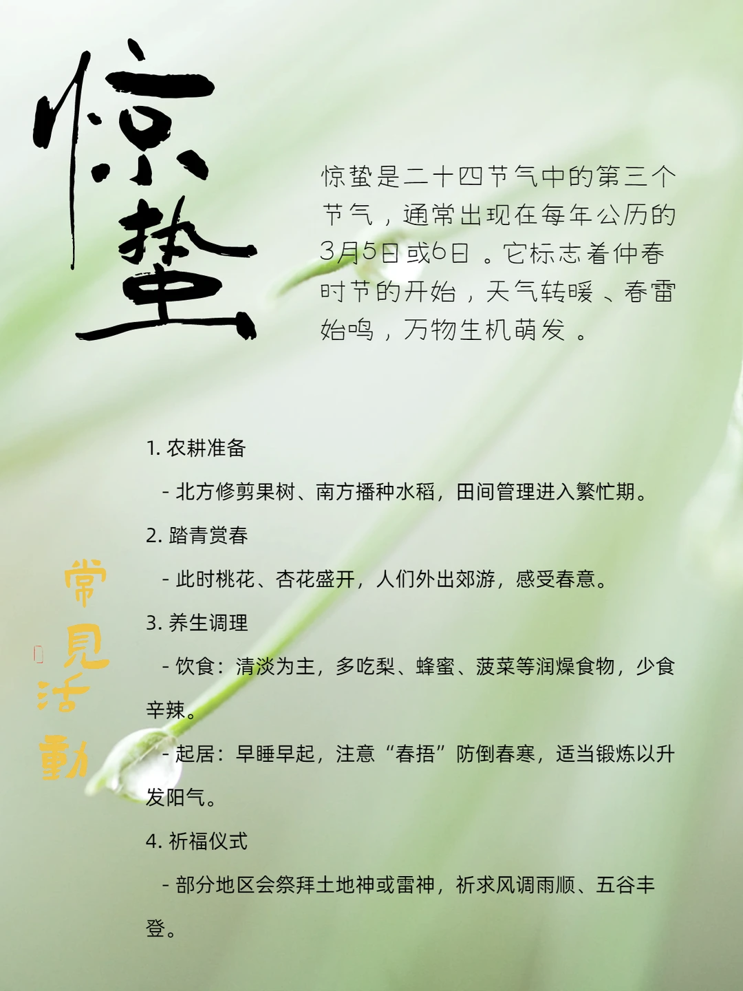 三、惊蛰时节的常见活动