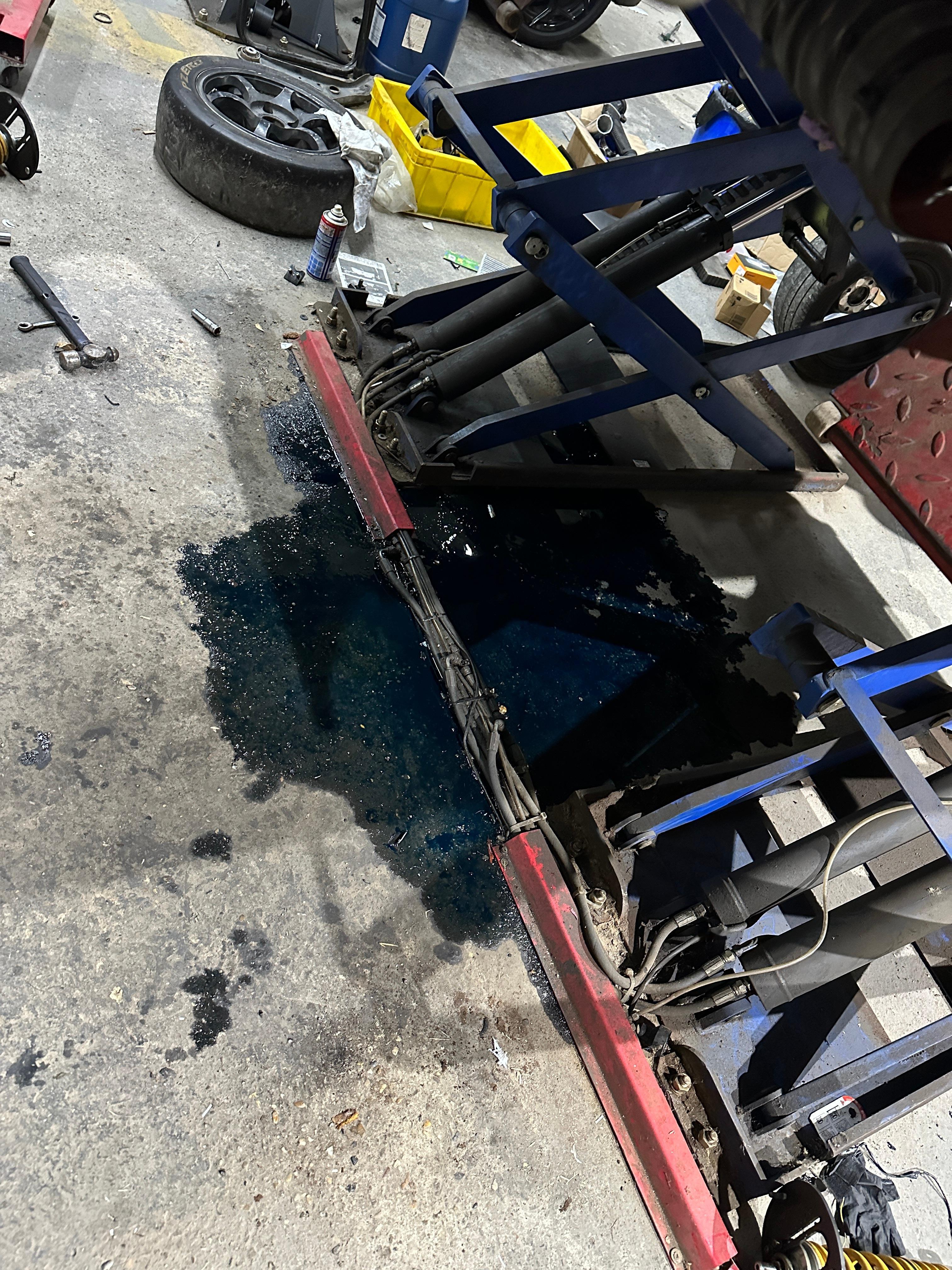 三个机脚其中有一个,差点给我掏死。今年第一台开始冬季整备的车。以后应该每年年底,也就是冬季开始以后,就会拉回来大整备一下。油水,机器,波箱,底盘,刹车,都检查一下。 换了鱼眼摆臂以后,角度比原车大,把半轴拉出来了,摩特的LSD油漏一地,贵啊…就这一滩,好几百。后面还有飞度,西雅特还没试车(还不知道要不要弄一些问题),我自己的思域:锻造,大涡轮,特调一下赛道程序,VMOUNT,宽体… 等等