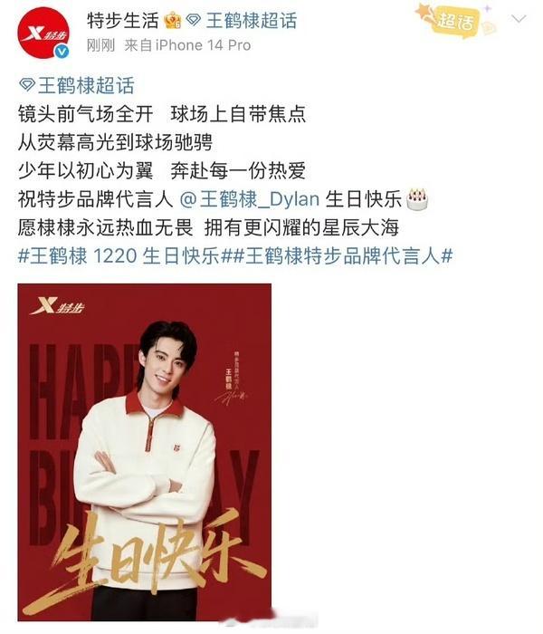 众多品牌方齐祝王鹤棣生日快乐,26岁的王鹤棣实绩已经如此精彩,27岁一定更加优秀。