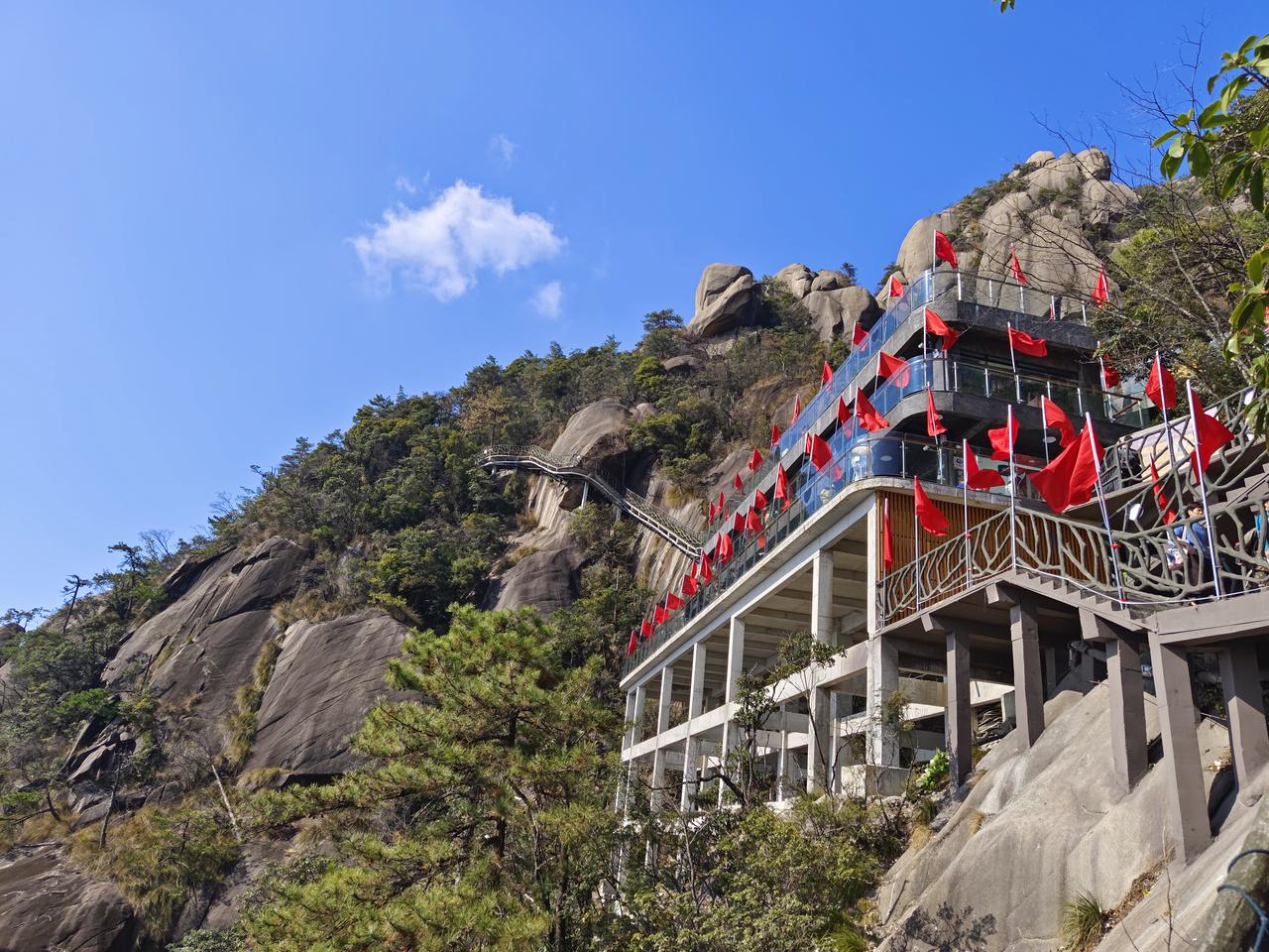 在上饶灵山为家国祈福,祝福国泰民安。 上饶灵山位于江西省上饶市广信区,是国家级风景名胜区、国家4A级旅游景区,因山脉连绵起伏、形似莲花,被誉为“江南第一灵山”。 灵山是道、佛二教圣地,历史上曾建有宫观寺庙百余座,现存石人殿、望仙观等古迹,同时还是江南民间信仰的重要发源地之一,“灵山庙会”被列入省级非物质文化遗产名录。 景区内森林覆盖率高达80%以上,动植物资源丰富,有红豆杉、银杏等珍稀植物,以及云豹、猕猴等野生动物,是天然生态氧吧。 灵山拥有72峰、36瀑、99座宫观寺庙,其中“雄霸天下”“华表峰”“金枪峰”等花岗岩峰林形态各异,栩栩如生,是大自然的鬼斧神工之作。灵山海拔较高(主峰天梯峰海拔1496米),加之湿润的气候,常年云雾缭绕,清晨或雨后常有云海出现,运气好时还能看到佛光奇观。 这里兴修了10节步云电梯,老幼妇孺皆可漫步云间,在蓝天白云,奇石嶙峋,漫山珍稀物种的天然养吧,享受天上人间的中国美食。 不醉都不行!