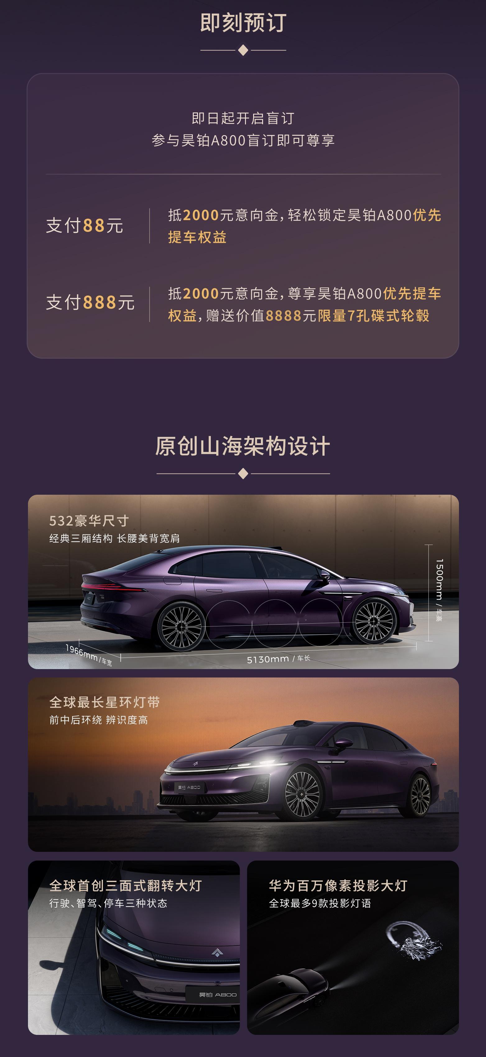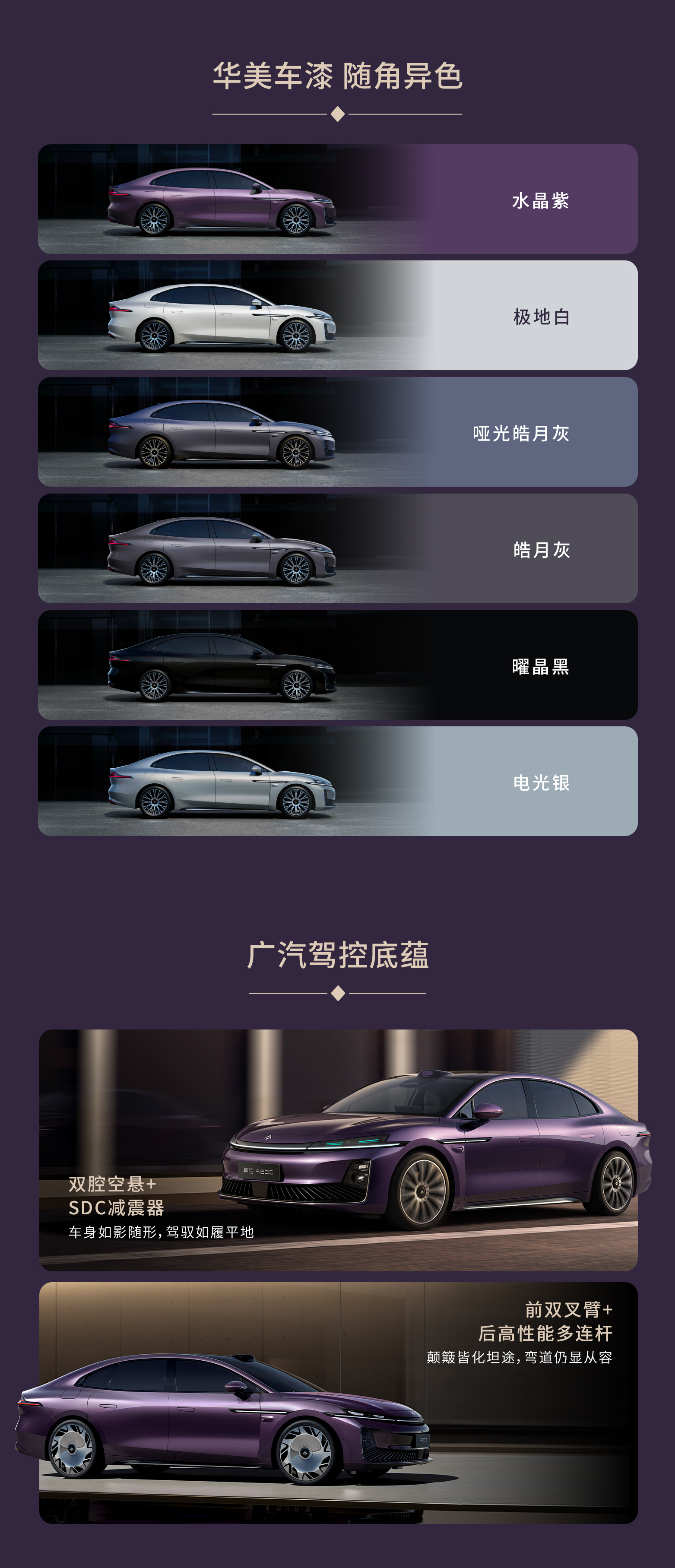 广汽昊铂A800启动盲订,实车已到店,以硬核产品力与诚意政策点燃市场热情。盲订政策清晰透明: 88元抵2000元意向金,轻松锁定优先提车权益; 888元抵2000元意向金,尊享优先提车权益与限量7孔碟式轮毂。底盘方面,昊铂A800搭载广汽顶级的智能底盘,双腔空悬+SDC减震器的组合可实时调节悬架刚度,舒适模式下优化滤震,支撑模式下抑制抬头、点头与侧倾,8个衬套协同作战。更搭载扭矩矢量控制系统(TVC),智能分配各车轮动力,让车辆极限稳定性提高20%,驾驶模式无级细腻调节,带来高阶人车合一体验。智能层面,华为乾崑ADS 4的WEWA架构解决了真实危险场景数据稀缺的行业难题,训练效率达真实世界1000倍;鸿蒙座舱5基于MoLA架构,从被动问答升级为主动服务,超强互联功能覆盖全场景。ASTC 2.0智能鹰爪系统全方位守护安全,高速爆胎时毫秒级修正车身姿态,让每一次出行都安心无忧,盲订名额有限,赶紧锁定。 广汽昊铂A800开启盲订