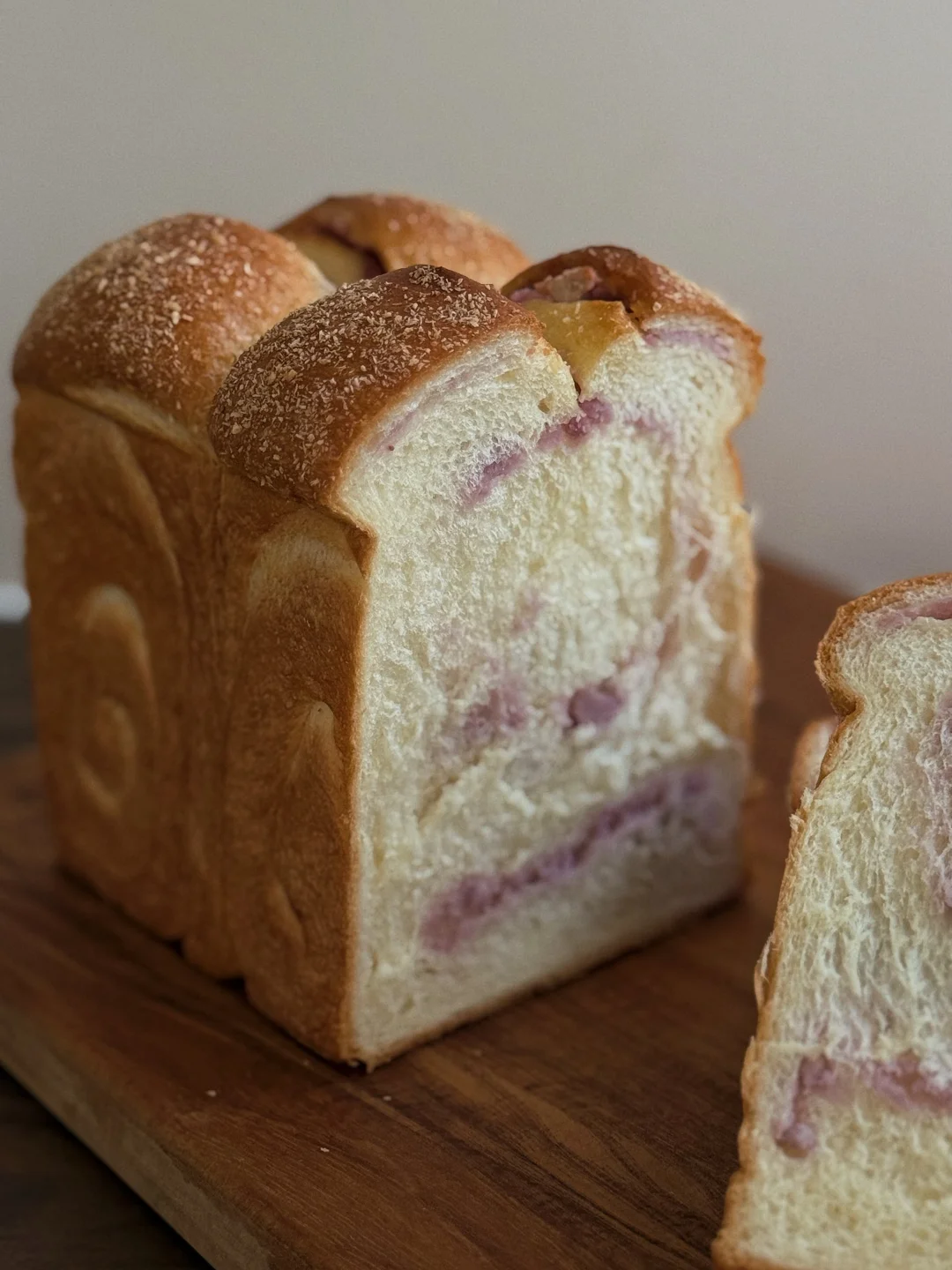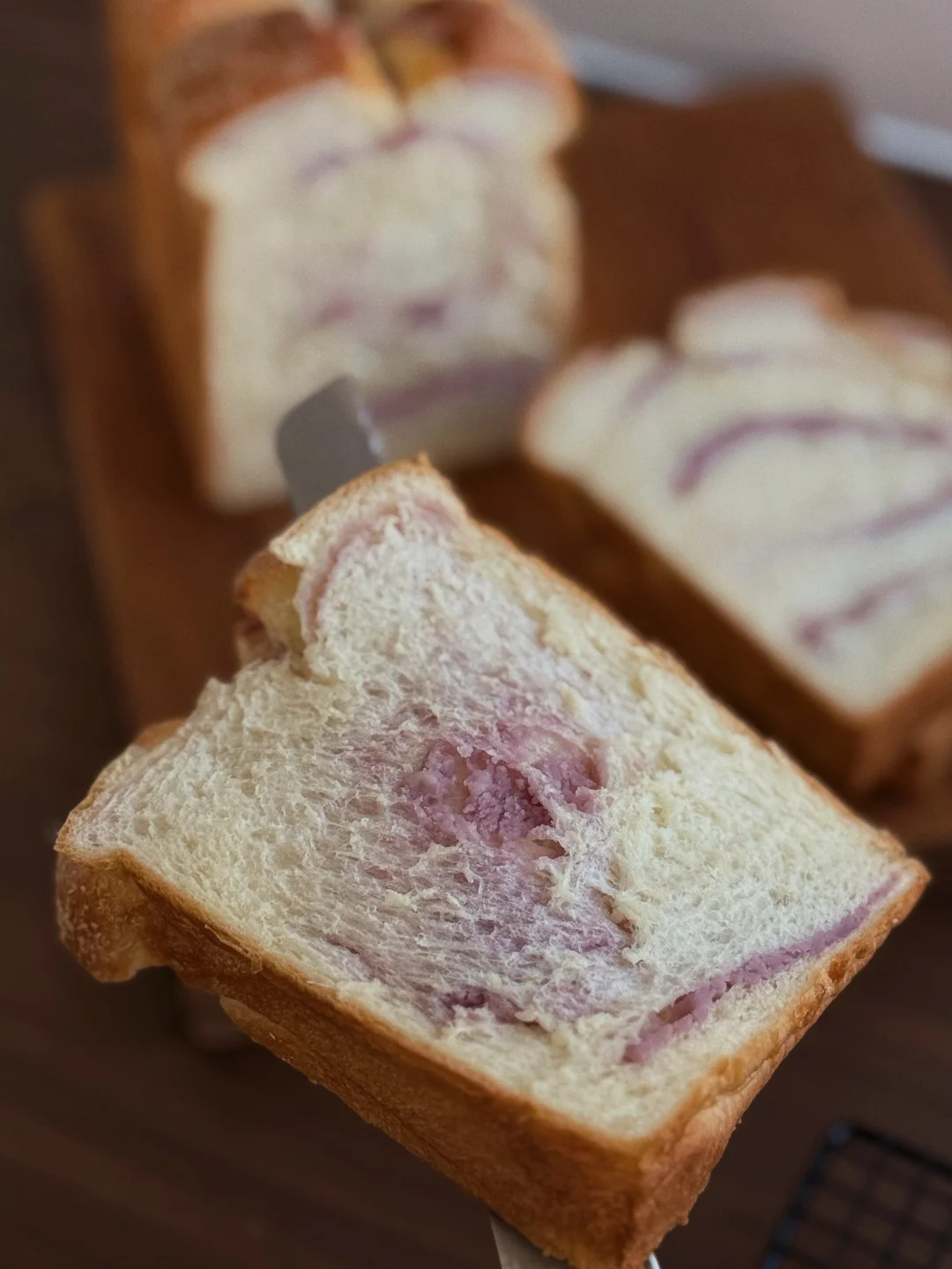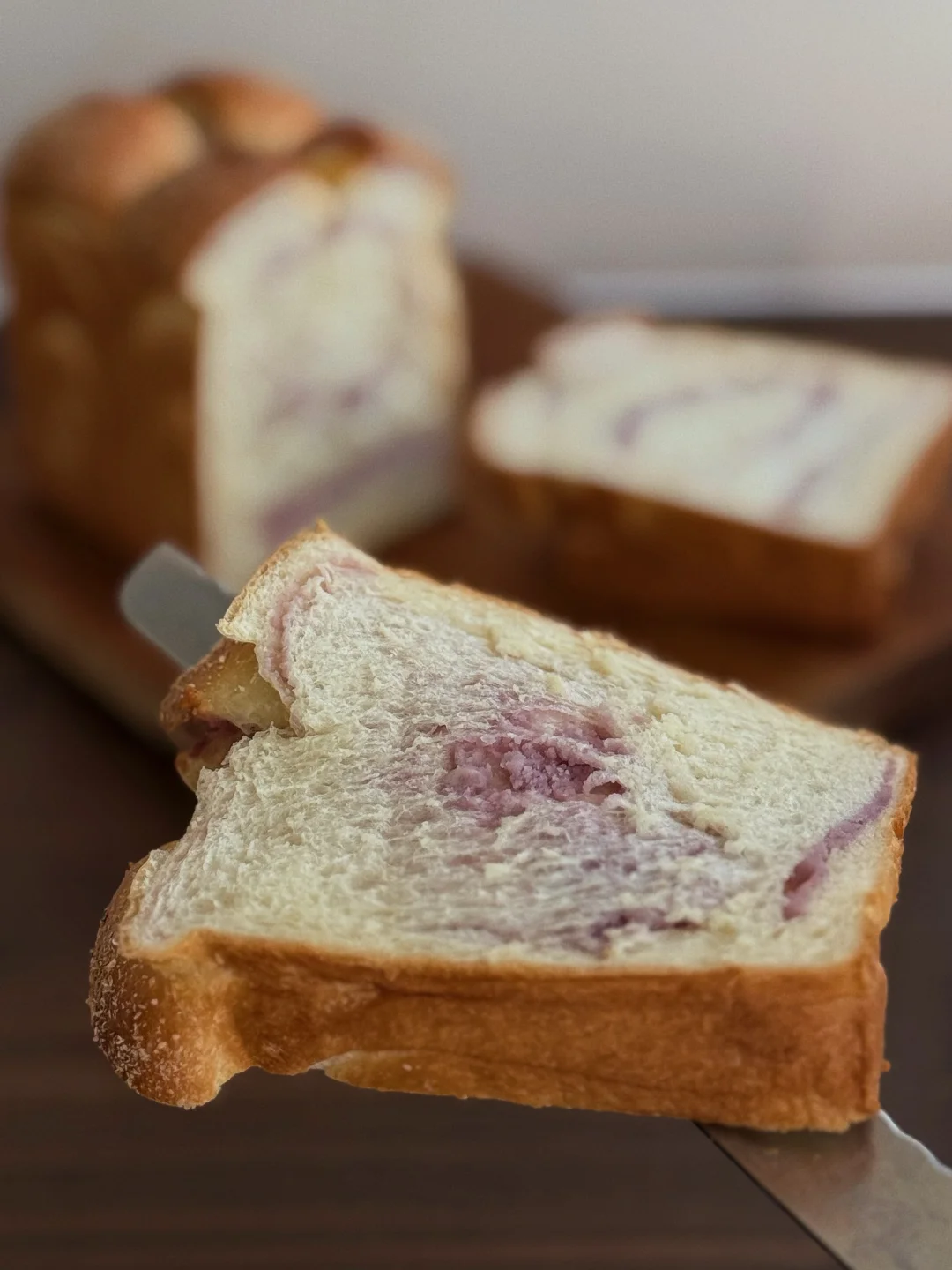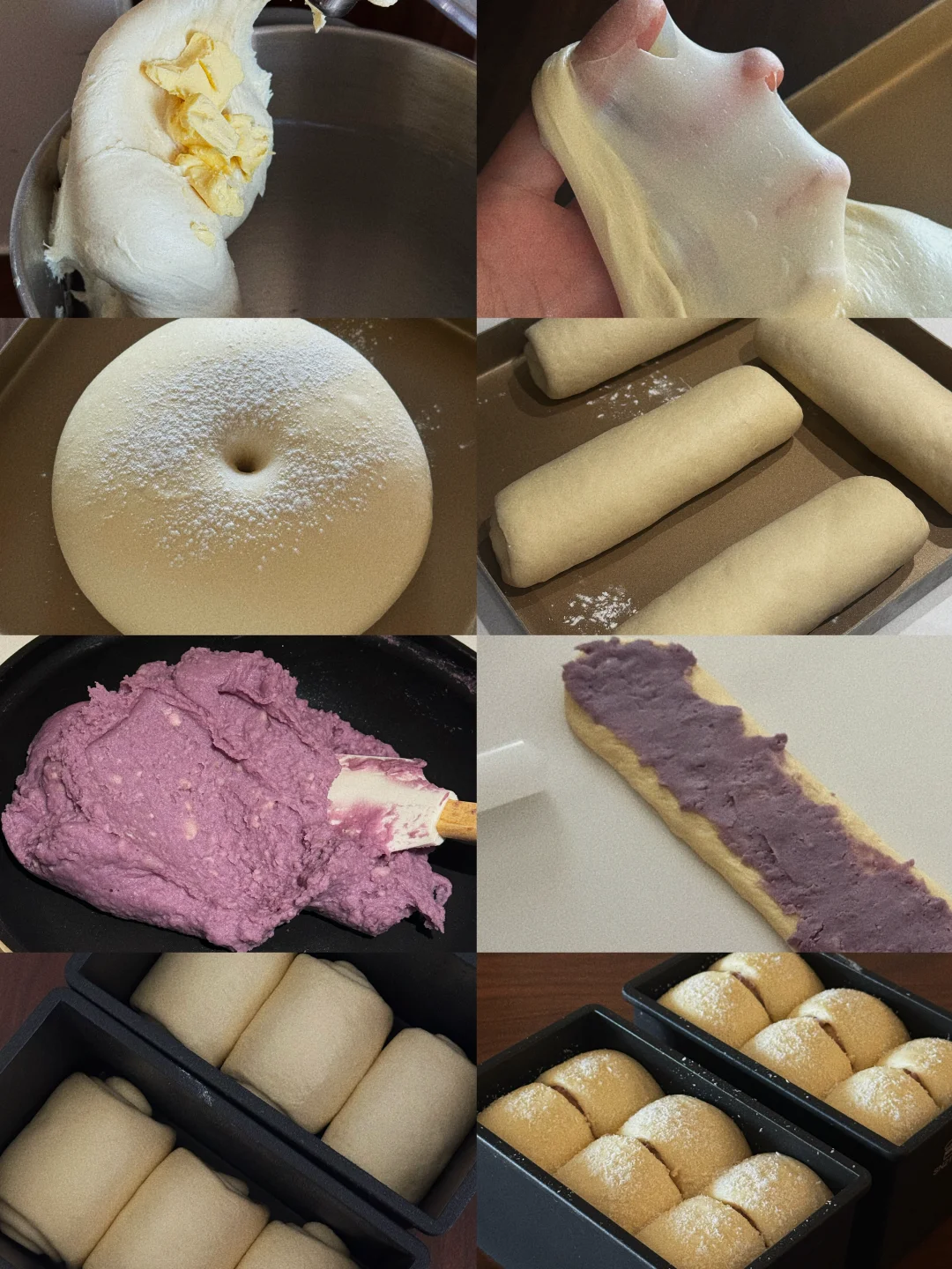 把奶香十足的芋泥加进入软乎乎的吐司面团里