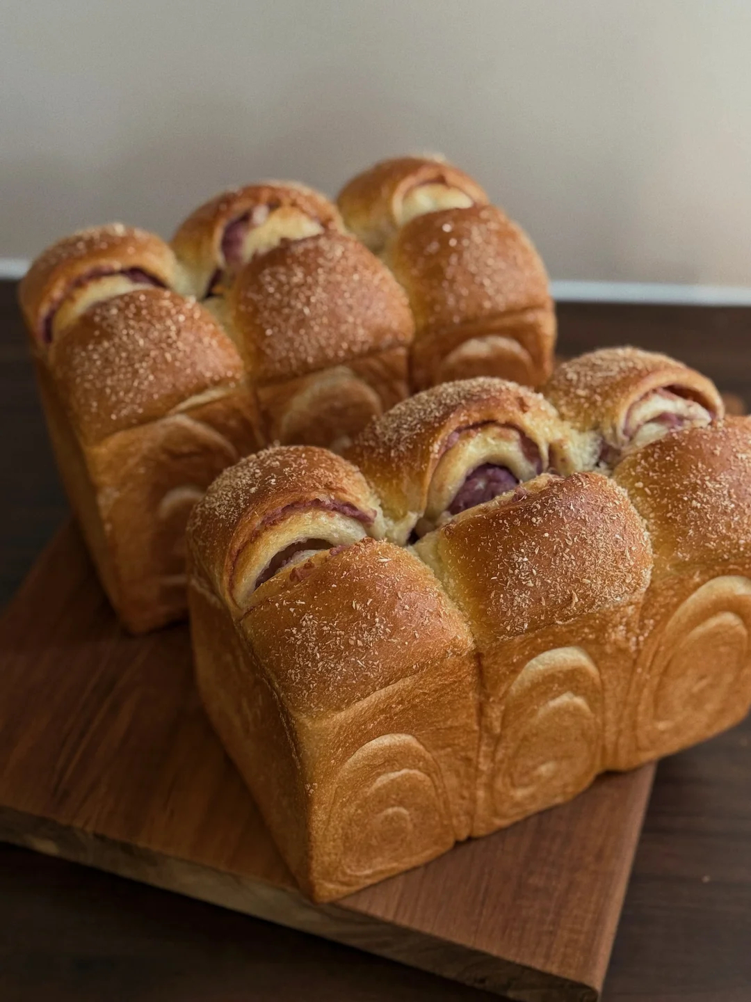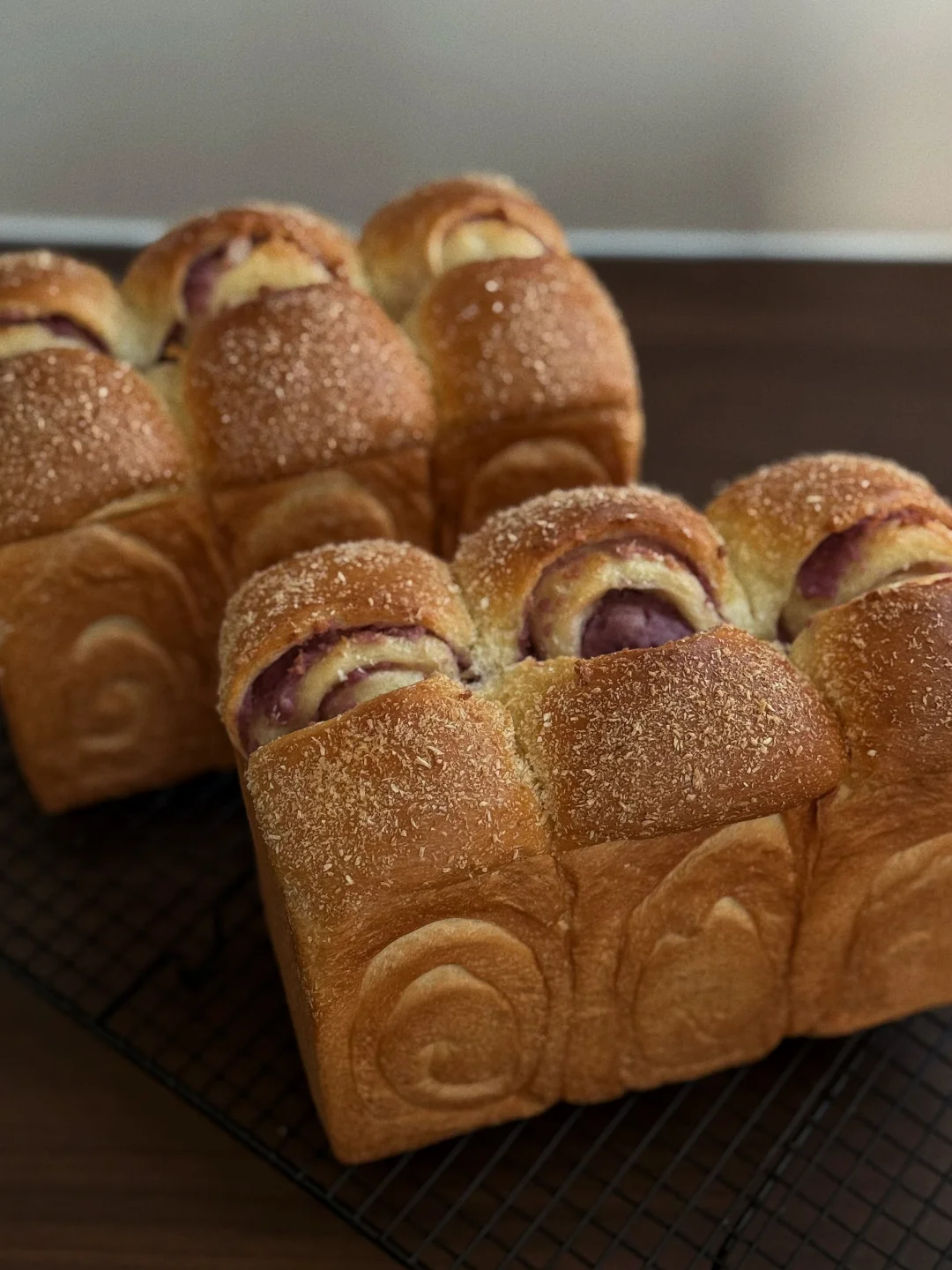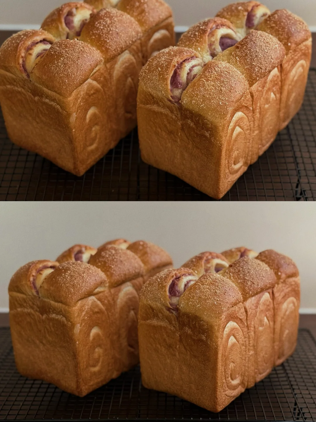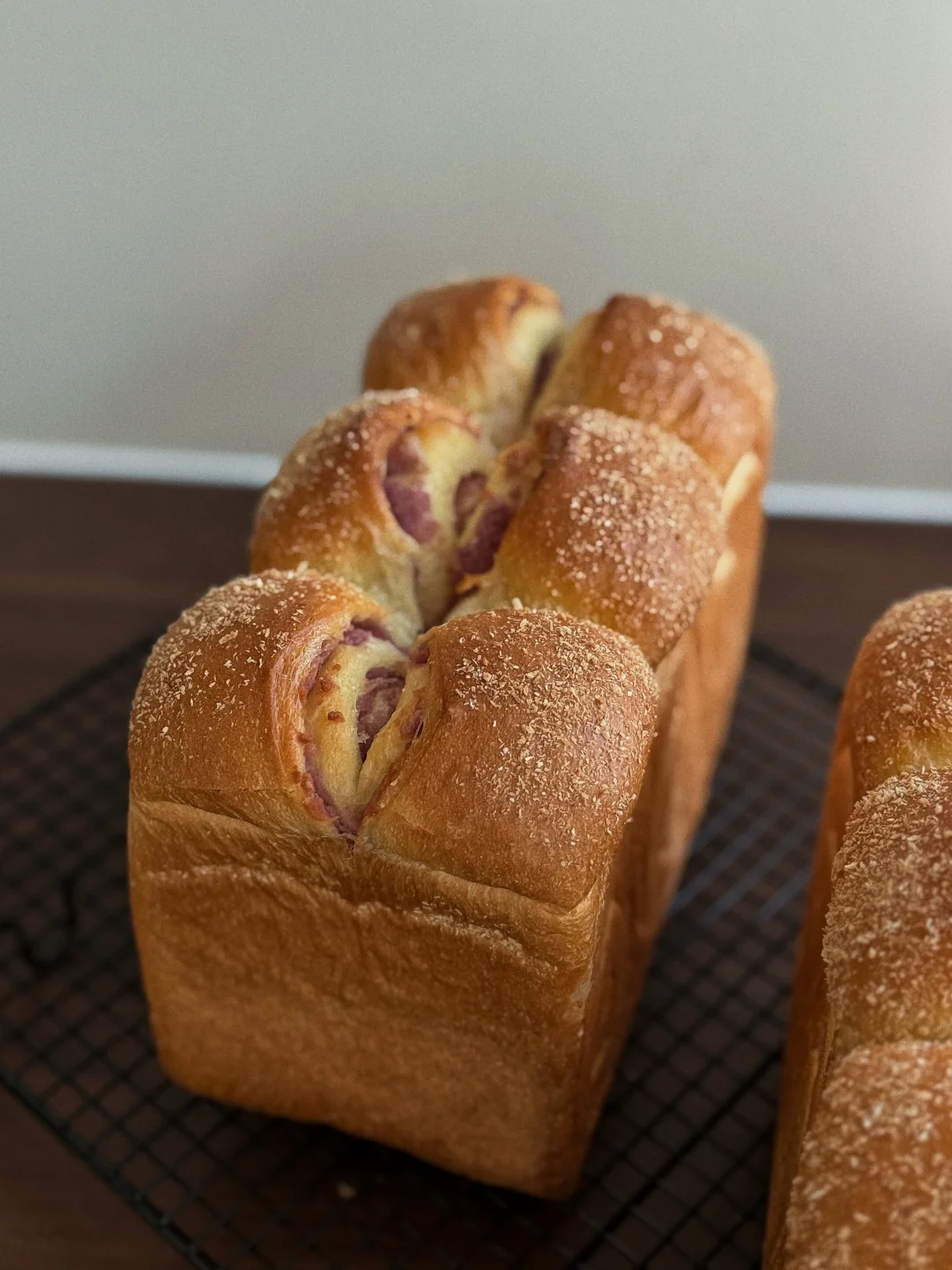 把奶香十足的芋泥加进入软乎乎的吐司面团里