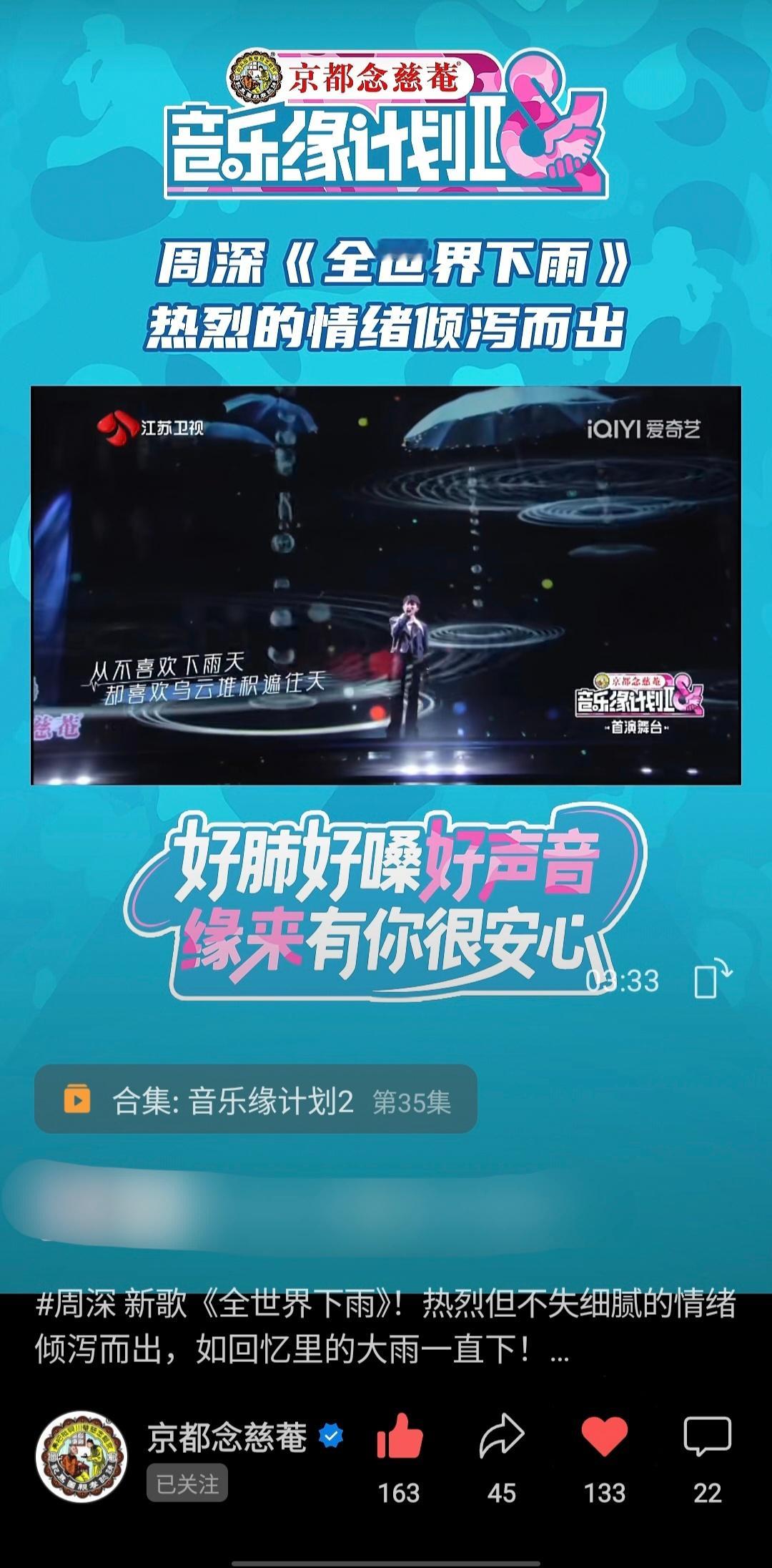 周深 📣 12.20 缘计划物料 📣【念慈菴】在破站、vx视频浩更新了EP9深深的舞台《地全世界下雨》多多四连【⭐🍎🧱】