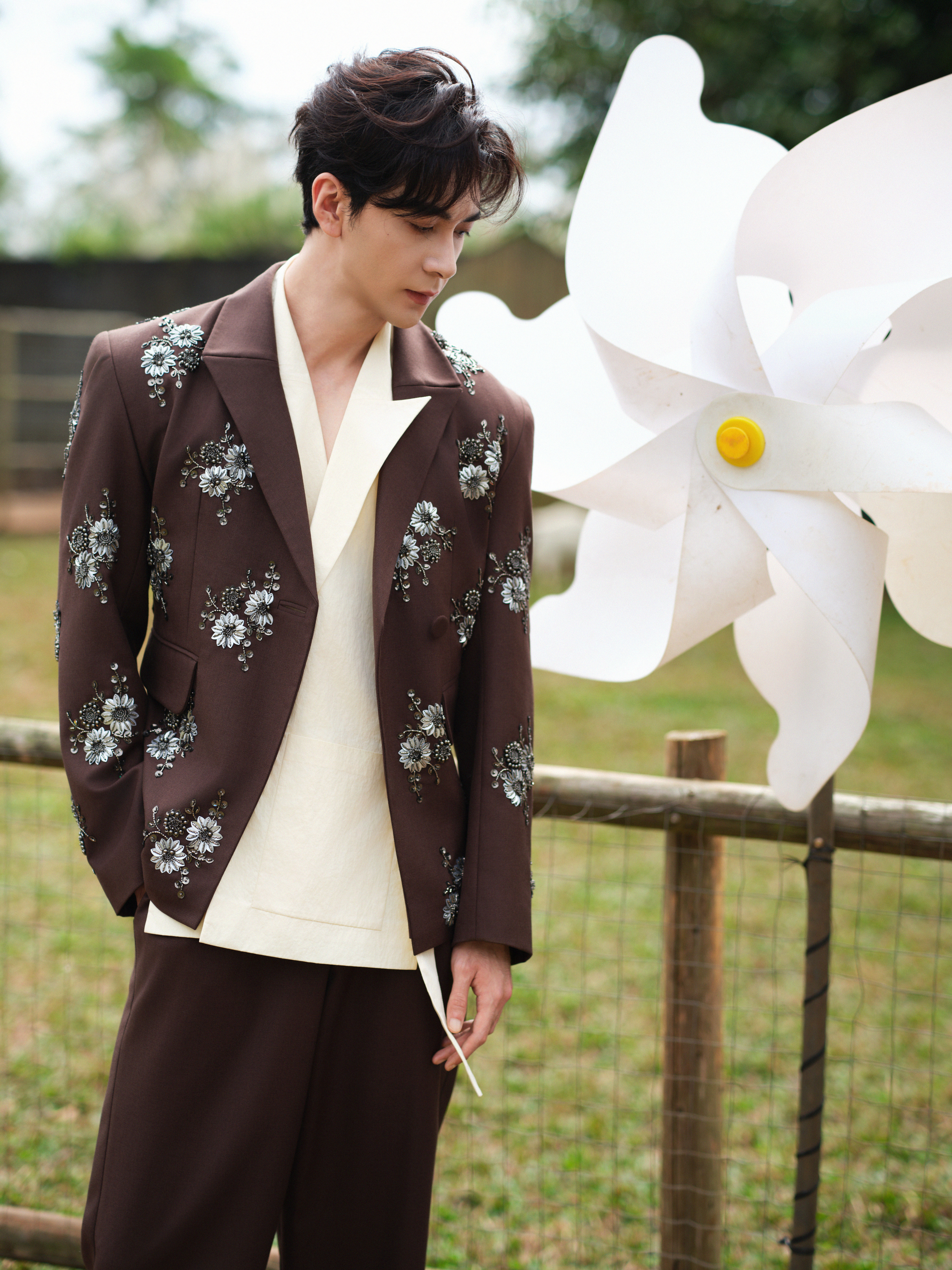 陈星旭金鹅奖出图 陈星旭棕色西装勾勒利落线条,银色立体花饰添上精致巧思,陈星旭这波造型直接封神!牧场风布景搭配软萌小动物,度假霸总的松弛感被他狠狠拿捏~是谁的DNA又动了?已经开始期待金鹅奖现场的见面啦!