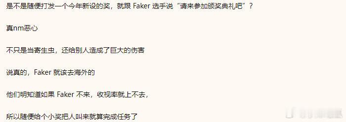 韩网热议:榨干Faker身上所有价值的寄生虫GOAT LCKLCK官方年度颁奖典礼上,Faker仅仅收获一个体育精神奖,引发诸多T1粉丝不满;T1 2025LCK 英雄联盟