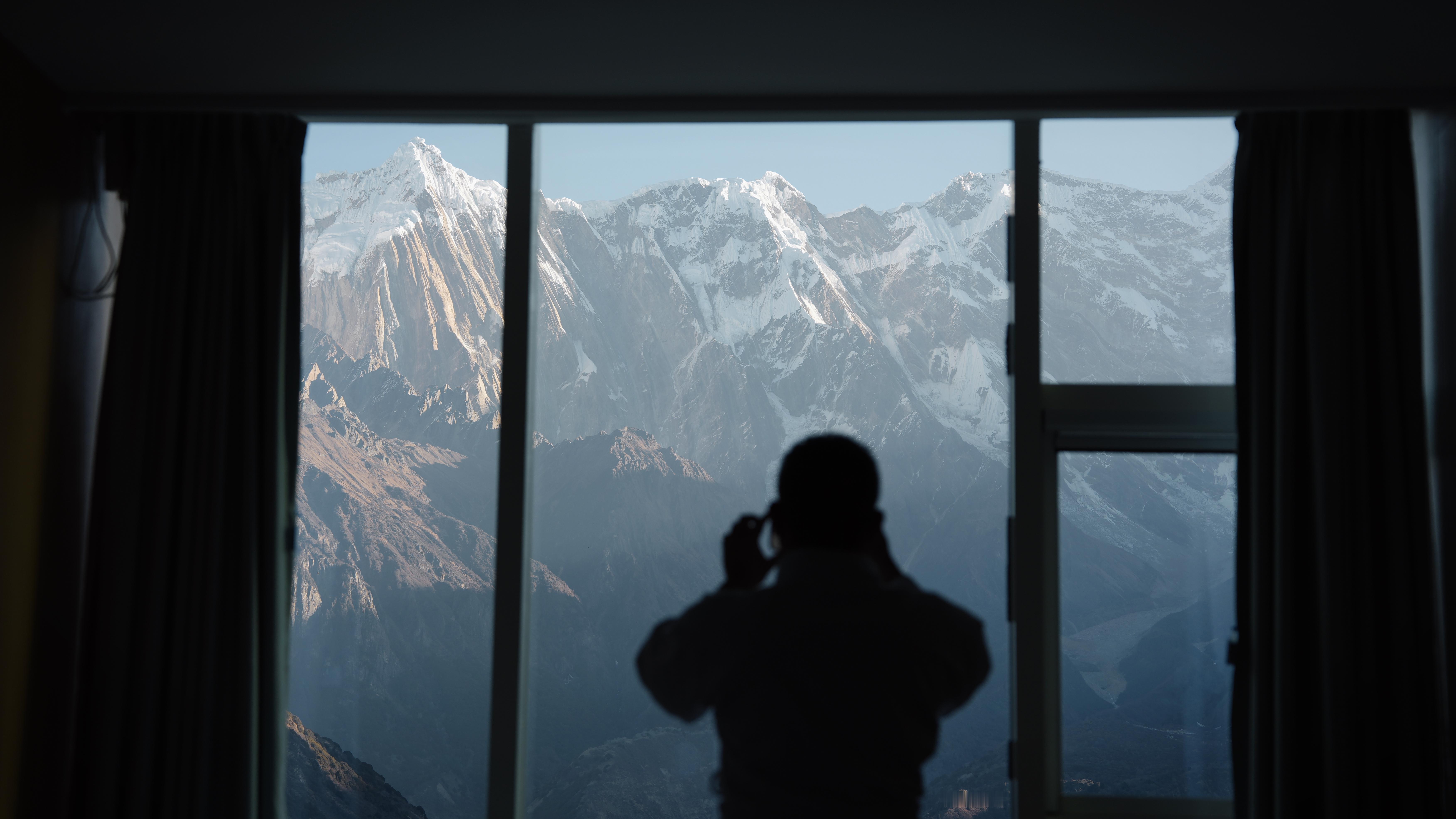 这家酒店主理人是个从事越野方面工作的老大哥,我上一次住是2023年,地理位置极好,几乎每个房间窗帘打开就能看到南迦巴瓦峰,你可以一边泡澡一边看,很耐兮,房间大概1000块左右一晚,不贵,这次我们三个人,订了三间,排着看日照金山,停车场也巨大,也有充电桩,户外搭了水池,可以拍南迦巴瓦峰倒影,我把它定义为索松村拍摄南迦巴瓦峰最棒的酒店,没有之一!前台三个小姐姐,有两个说明年五月计划跟我们一块去冈仁波齐转山,有点意思 林芝·桃花韵酒店(索松店)