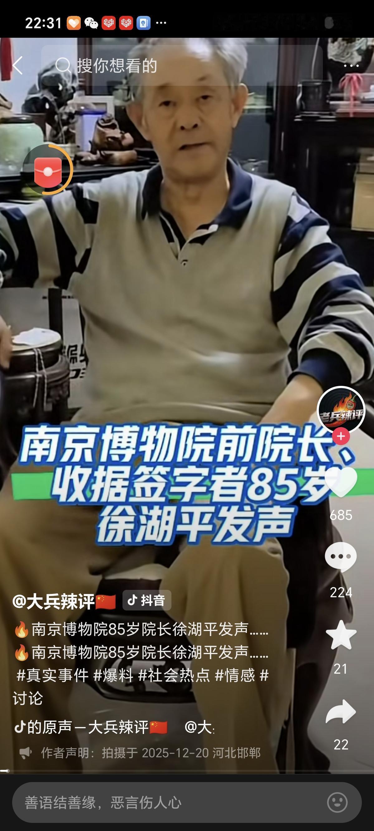 个人履历就在那里摆着, 2001年你就是南博的院长了。 对字画不懂?谁信? 大半辈子钻进文物堆里, 熏也能熏出个火眼金睛来。 那张发票明明有你的大名, 却说不知情,没经手。 有些事啊,不上称没四两重, 上了称啊,千斤也打不住。 调查组来敲门, 糖尿病挡不住, 前列腺更挡不住啊!