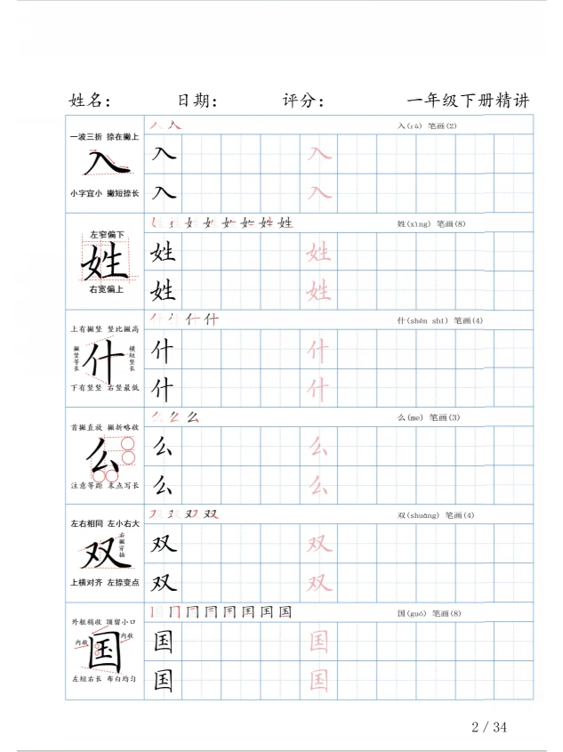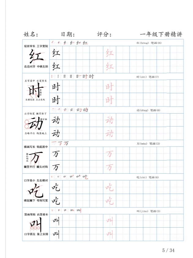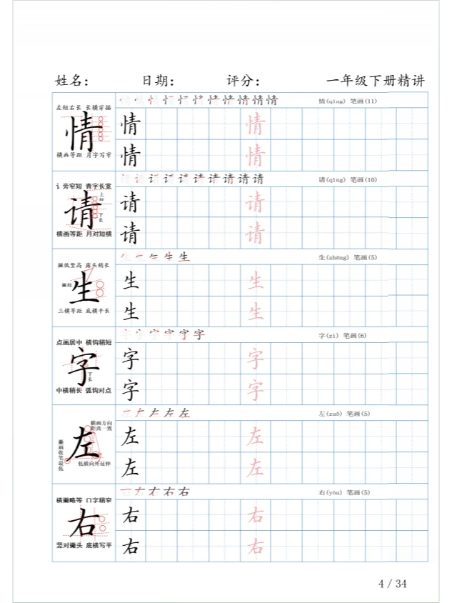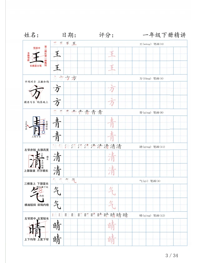一年级语文 小进步学年 语文知识点