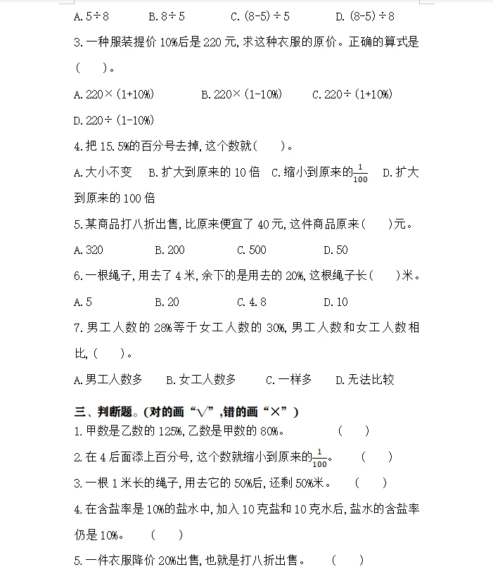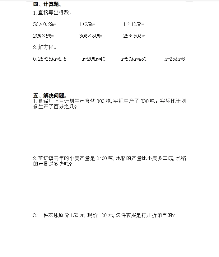 六年级数学试卷 数学 学习