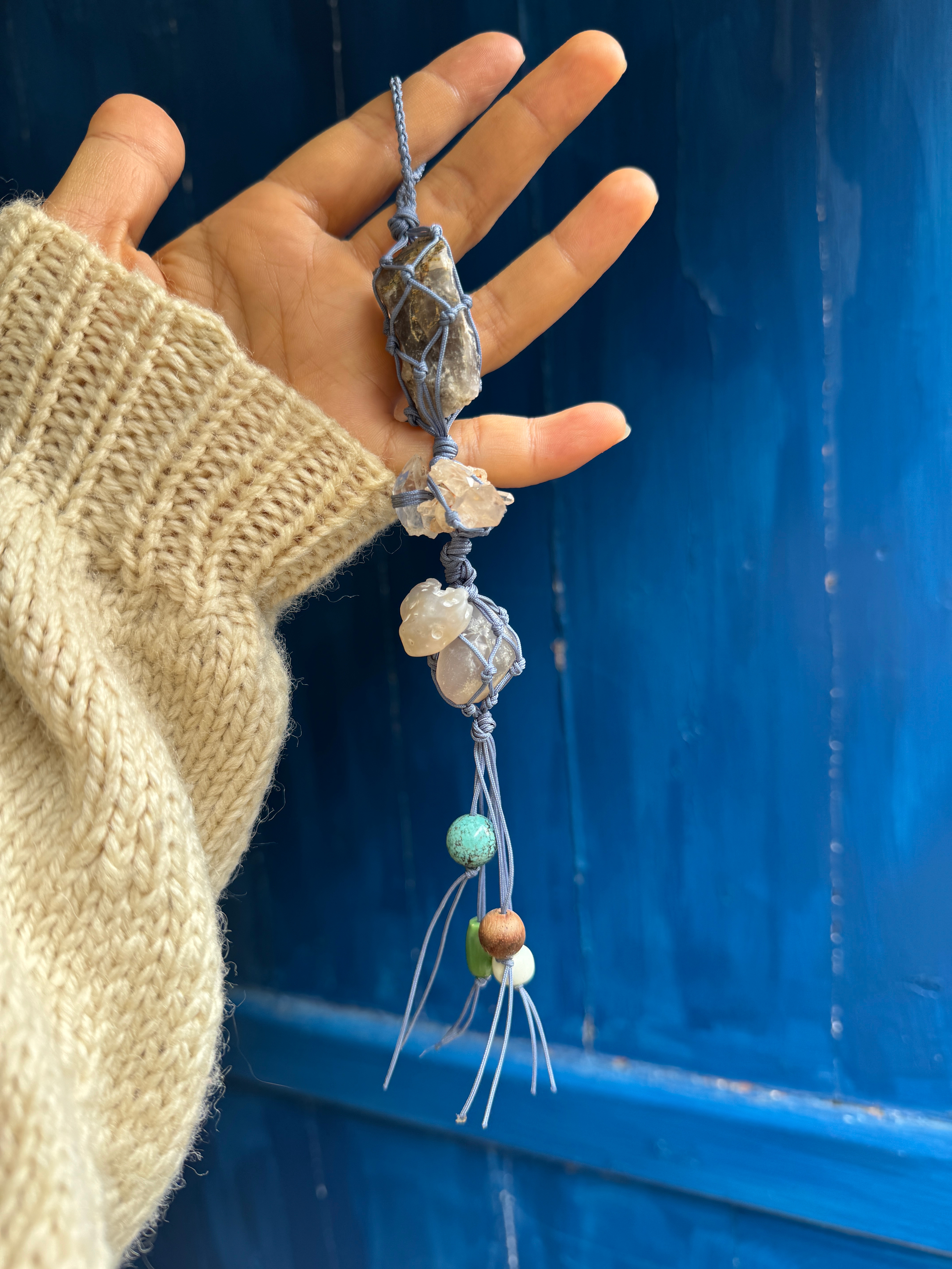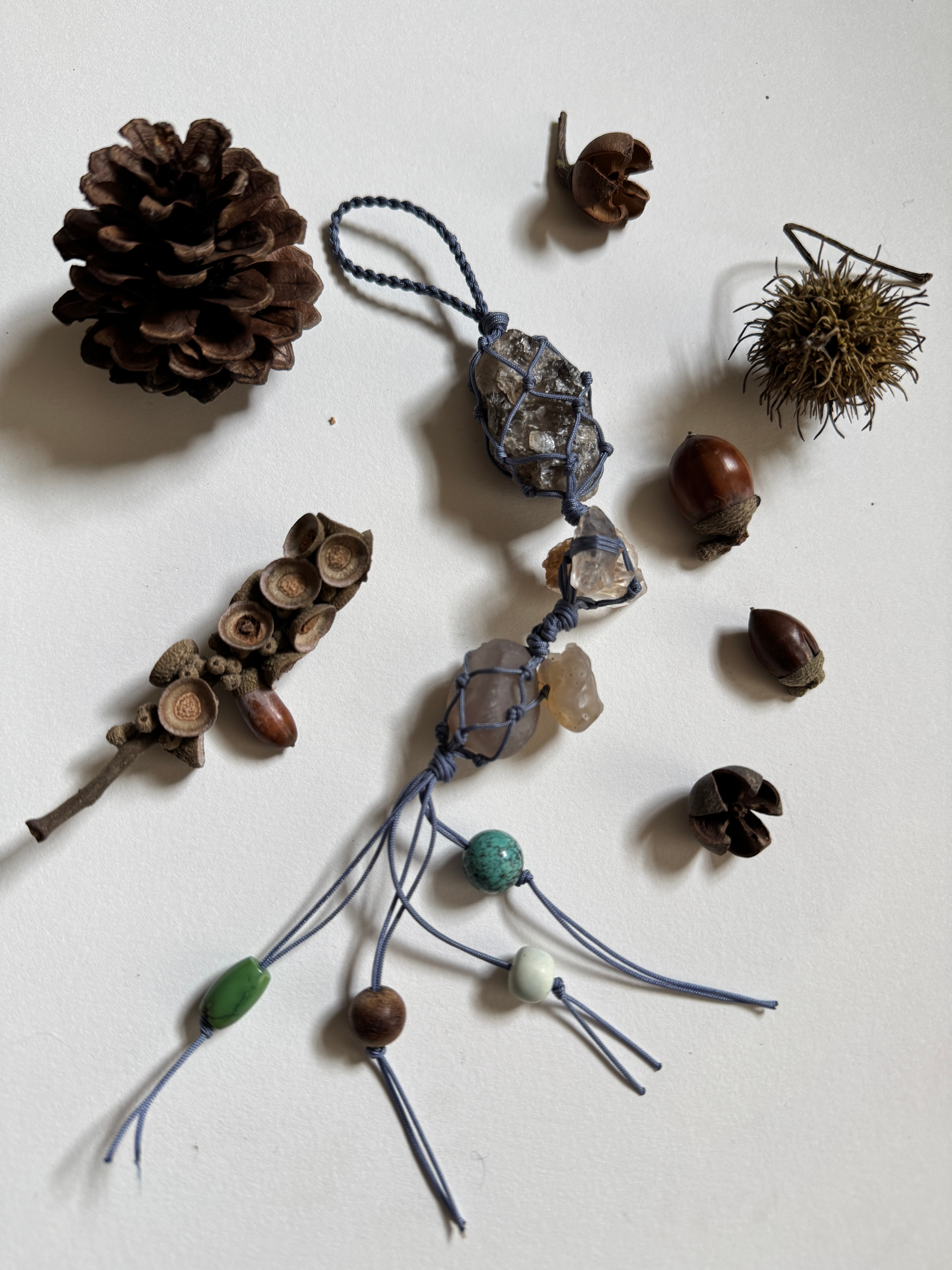 来自宇宙的礼物|岳阳大云山捡的茶晶原石+广州黄麻村捡的白水晶+格鲁吉亚巴统捡的玛瑙编了一条挂绳。